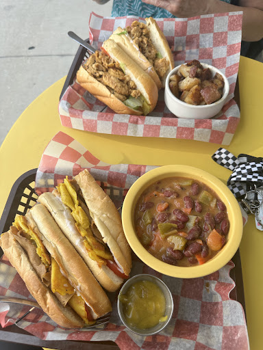 I managed to be the last-minute guy, but they really didn't mind. I apologized ahead of time when I called, and they said, "Hey man, we are a small business; We could use the money." I walked through the yellow screen doors and felt between worlds as it seemed part saloon, part Grannie Hatties Kitchen. You're met with what every tibbys and Joe's crab shack strives for with art and music themed posters on the wall, with an organic "I lived it, I didn't buy it to look cool" aesthetic. With a small dining area and a diner sized kitchen that basically looked like a slightly more spacious food truck, bar top counter, and engaging employees, this is the favorite spot you aren't currently eating at. Note: The menu online is for the food truck, and they have an in store menu. I got a little excited for an item on the online menu, but I was relieved when I found they had fresh, non fried options on the in store menu. Their top seller is the Red Beans and Rice, don't sleep on it, at least get a side of it. It was so good, I had to buy more to take home. It was so good that it ruined my expectations for good red beans and rice. This is now the standard. I also had their take on a cold cut hoagie. This gem is made with homemade deli cuts, and it nailed the experience of what it felt like having one of these bad boys back in my meat-eating days. Stop by. You won't regret it. This is like stumbling off bourbon street and landing in a local dive in NOLA. Pair your meal with an Abita craft brewed Root Beer, just be sure there's one...