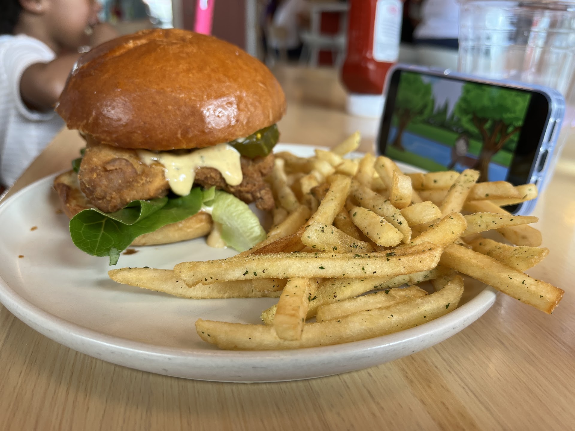 Read moreGermain's Brussel Sprouts are divine, but the chicken sandwiches and fries are average at best. Parking is tricky and sometimes you'll have to walk from the neighboring shopping center if you want to eat at the restaurant and not get towed. I've been to Germain's a few times to try different menu offerings, but now I go strictly for the veggies. Their sandwiches are made with chicken thighs which would normally be great, but something about the way it is prepared leaves the meat a little rubbery on each bite. Combine that with their dense sandwich buns and you'll have a scenario where each bite forces sandwich toppings out of the sandwich. This has made every sandwich I've tried there particularly messy. The parking lot is small for the number of stores in the shopping center and most of it is a construction site, so a nearby parking spot is hard to come by. On more than one occasion I've pulled into the parking lot to snag some sprouts but could not find a spot to park, so I had to go elsewhere. Service is excellent as is the atmosphere indoors. They have is a quaint patio adjacent to a 5 lane road, so outdoor seating has its pros and cons. I'll be back to attempt to order veggies, but won't recommend it to friend looking for a chicken sandwich because of the subpar offerings and...