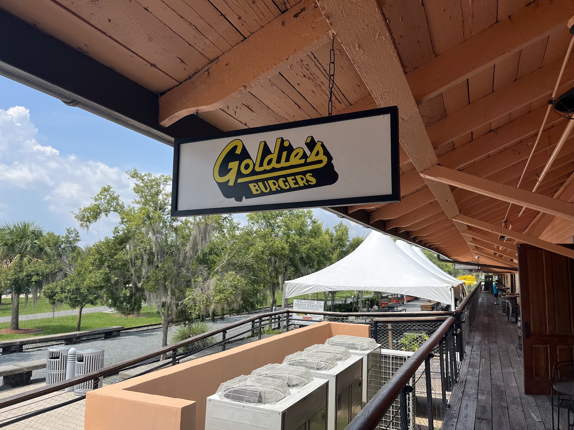 Read moreJohn, Adam, and Gary kicked a** for us today! My wife and I stopped by for the first time. We come to visit our son for all home game weekends and whenever else possible. We’ve been by and seen Goldie’s Burgers several times and finally stopped for lunch just now. We asked John for recommendations and he didn’t miss! Adam and Gary in the back came through big time! My wife had the cheeseburger ATW and I had the double double ATW. The smash burgers HIT THE SPOT! We had the fries, broccoli, and tots, and while the tots were my favorite (nice and crispy) they were all great! We were also surprised by the cleanliness of an open air type establishment. Big fans were situated perfectly to move the air and create a gentle coolness without blowing directly on the tables. This was a great find and WE...