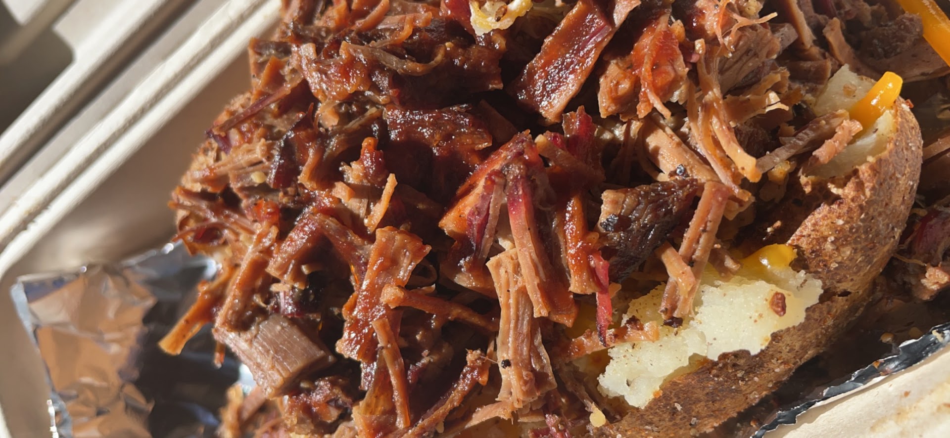 Family owned and operated spot in Gainesville, TX. I got the Take Me to the Water. When I ordered it y'all, the name didn't make sense. After eating it, it makes perfect sense!! đ€Łđ€Ł Those stuffed jalapenos were hotter than I expected but balanced well with the meat and cream cheese stuffing. Pair those Texas Twinkies with the hot links and this sandwich had me sweatin!! The smoked chicken with cheddar cheese, helped to balance the heat, and the Texas Toast was a must to house all that meat!! I mean the container it came in had to be held shut with a rubber band! My wife got the brisket potato with extra brisket. The brisket was tender and flavorful! The potato was seasoned separately, which doesn't happen often, adding to the deliciousness of the meal!!