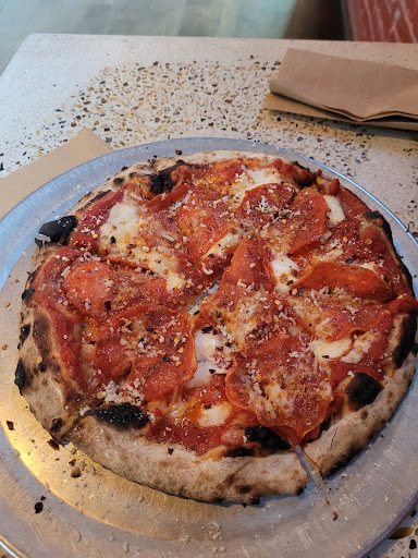 The pie itself was okay. The sauce was not watery and had a decent chunkiness to it, which I liked. Spice and flavor was okay, slightly acidic, could benefit from a little sweetness to cut it. The crust however was disappointing. Very thin, so no chew to it. Wood fired, but no flavor gained from smoke or wood selection. Crust was bland and flavorless. Needed some olive oil to give it any complexity. Had a powdery aftertaste and no semolina. Tasted like grandma's biscuit dough remnants. Pepperoni was not greasy, but it probably wouldn't hurt to mask the dry dough...