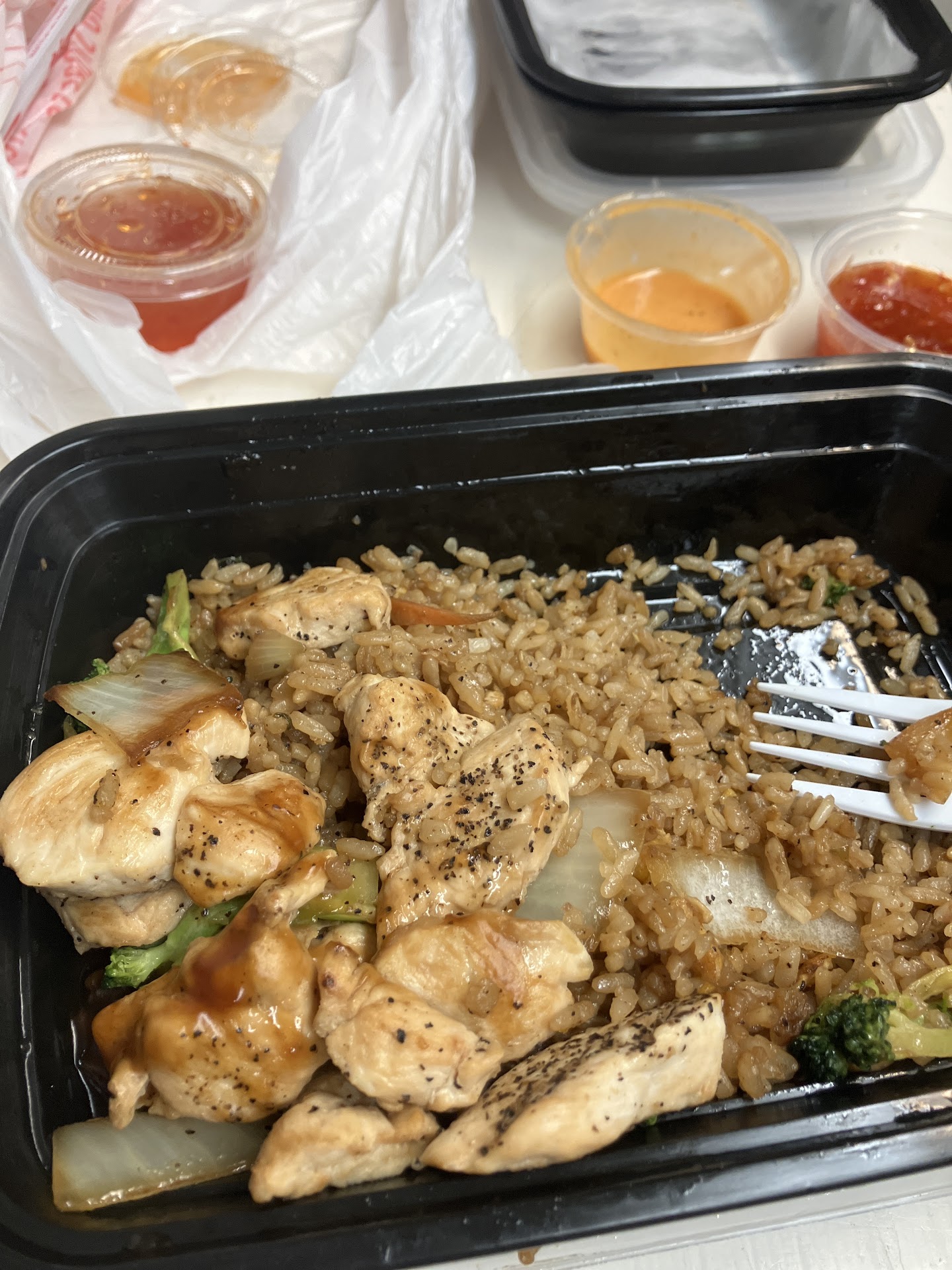 I also want to state that the young woman that responded to my review most definitely had at least a slight attitude with me and she also intially said she would try to look up my order from March to see about giving me 1 extra yum yum sauce. She then said she couldnât give me the sauce because she couldnt find my order from March. So even though she was claiming she was completely out of any more sauce for the night I donât think that was completely true. The sauce containers are already small. So I believe there was enough sauce for me to pay for 1 more sauce. She did not have to act like that.