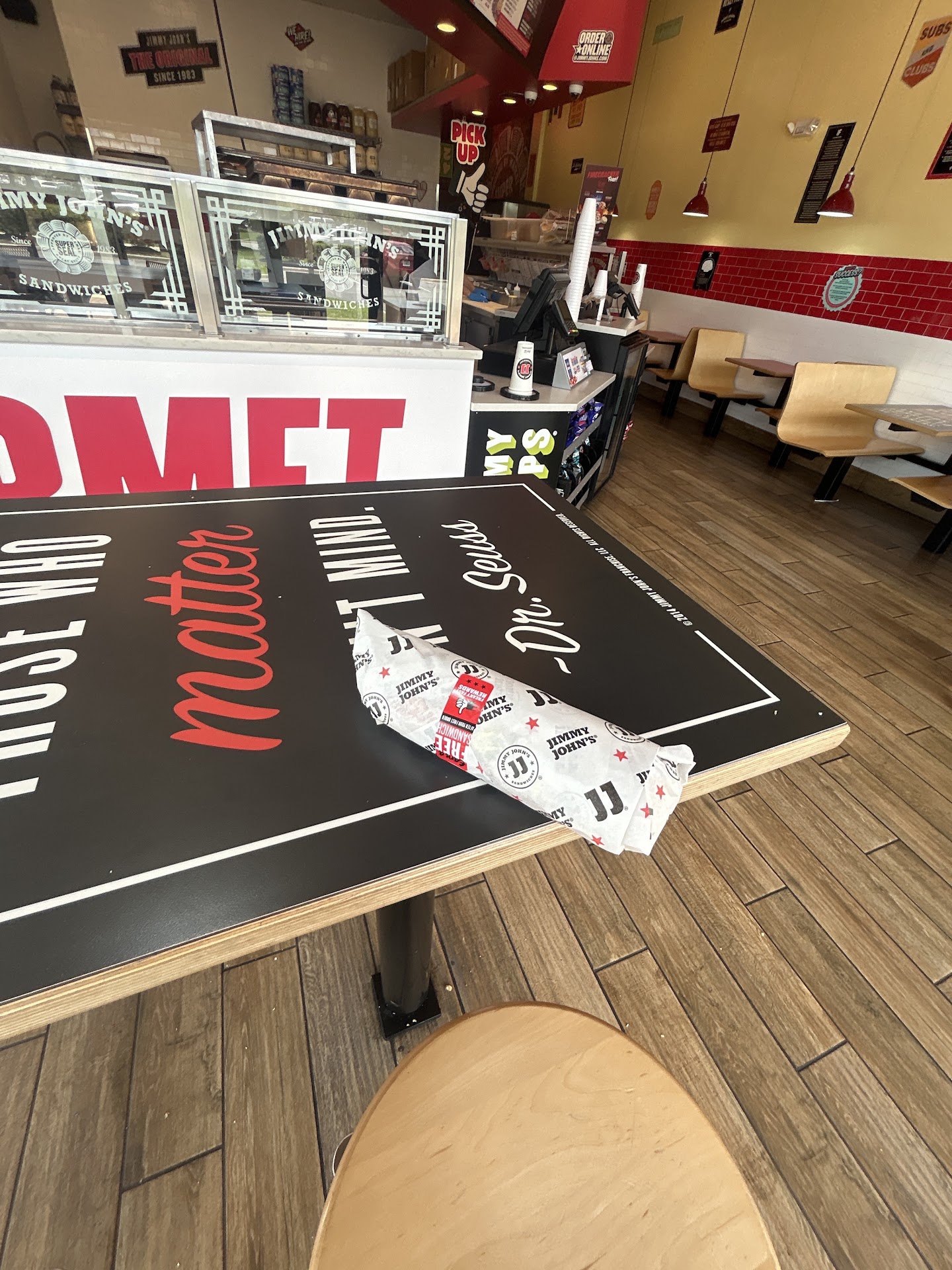 Your service used to be a hallmark of efficiency and speed, but now it seems that the focus has shifted entirely to online customers, leaving in-store patrons neglected and dissatisfied. The current situation is a stark contrast to the "freaky fast" slogan that Jimmy John's once prided itself on. Perhaps it should now be changed to "freaky slow" to better reflect the reality.