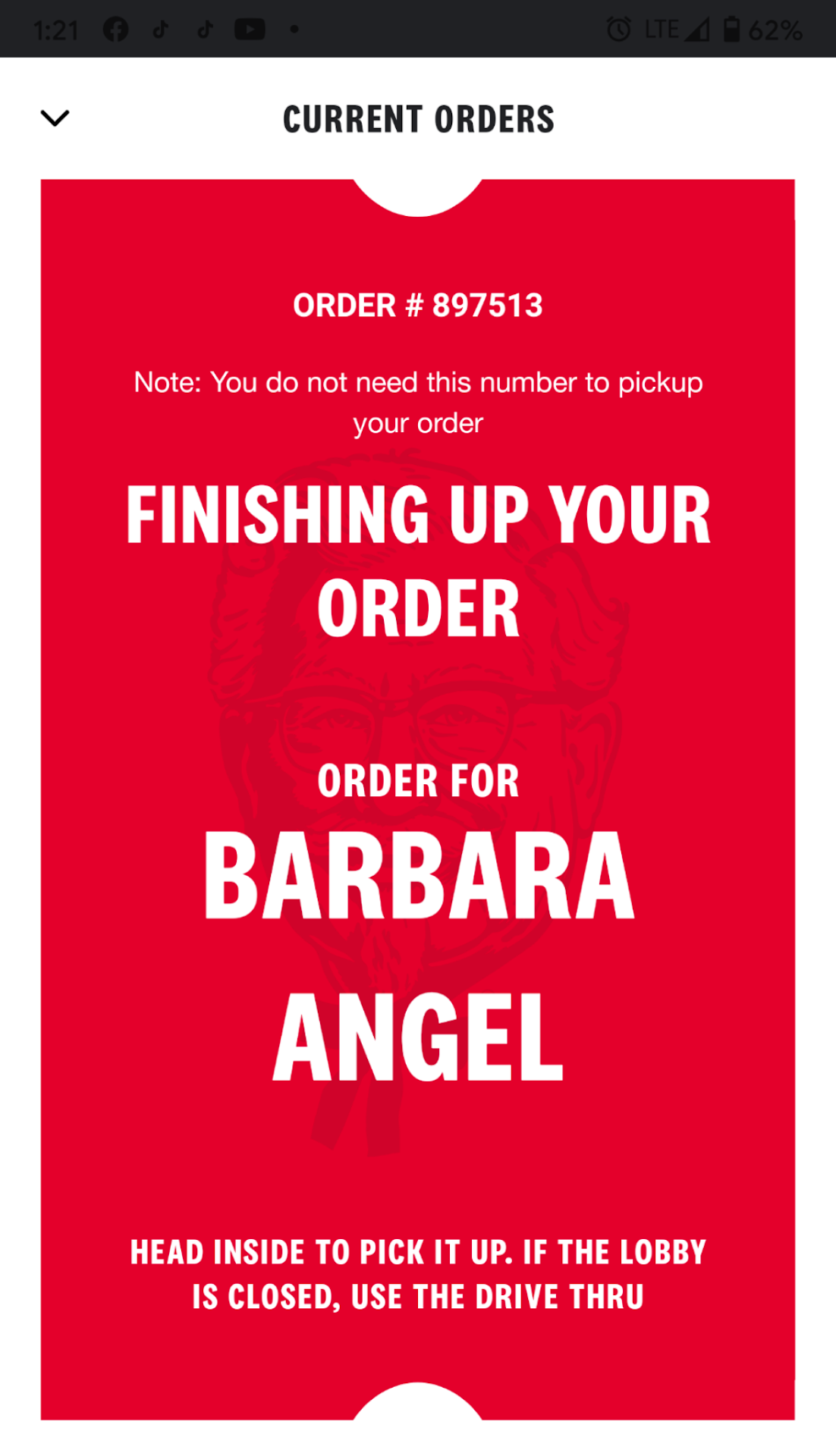 Read moreThe service has never been overly wonderful but fair enough not to complain about. I ordered a meal for pick up on the app for Mother's Day. I showed the man behind the counter my app confirmation and my name which was also on the app. He asked for my customer name. I told him and showed him again. He had a very thick accent and said no to the app asking for the customer name to which I replied again with my name showing him it was on the app. This went on for a few minutes. He handed me a piece of paper and pen. At this point I was worried I must have misunderstood him so asked my boyfriend is he asking me to write my name? I scrolled down to show him the order and repeated my name again explaining it was written on the screen. He finally understood and turned to handle my order. He was so rude the entire time. This KFC is closest to me but I will not...