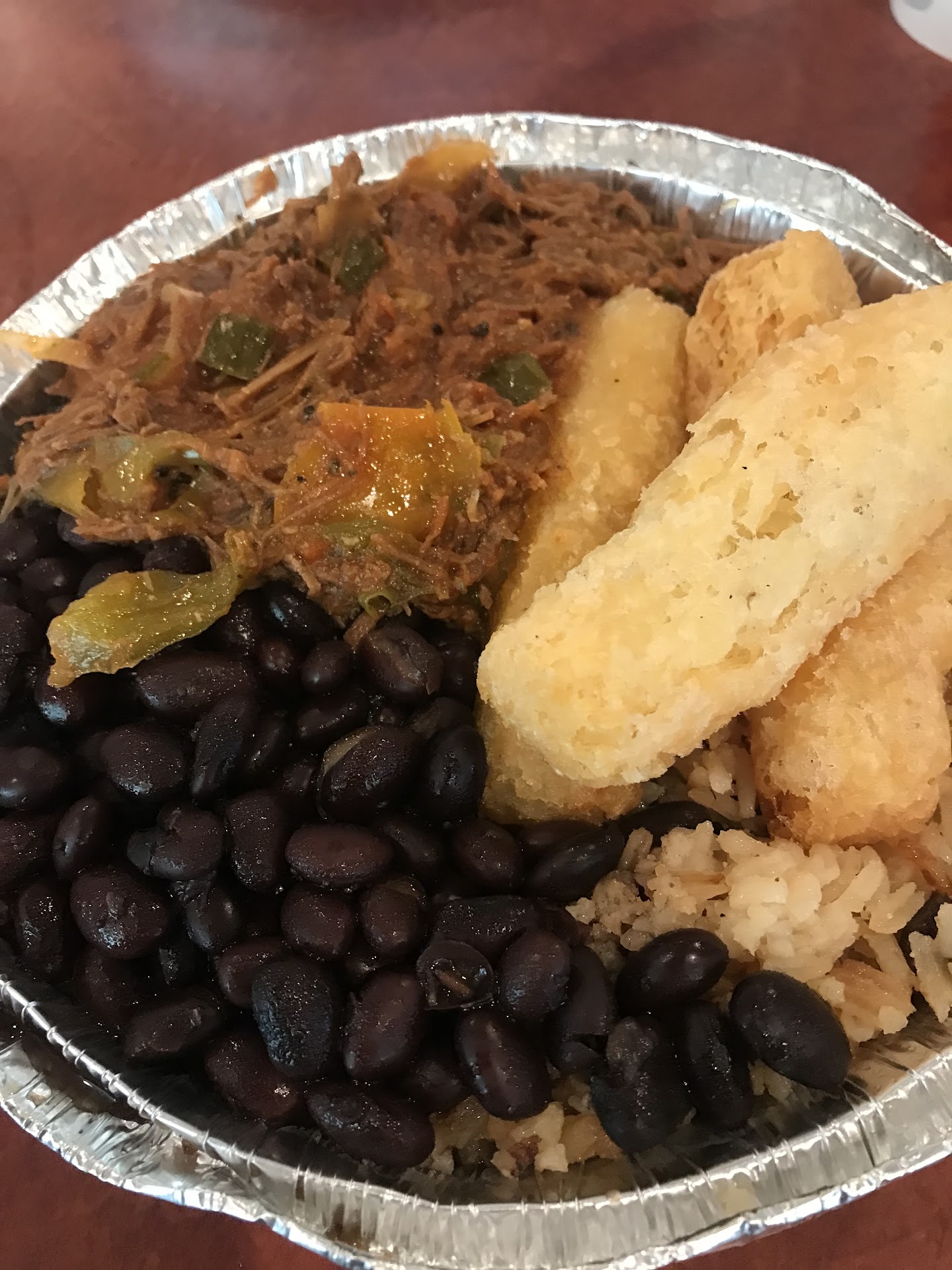 Read morereally wanted to treat myself to some authentic Cuban food so I googled it. hate to say it but it was pretty disappointed. everything mostly tasteless. the yuca was dried out and tasteless and when they said they were going to give me some sauce it was like tartar sauce or something. at least mi apa gives you the lime. mojo to dip in and is delicious. that you could tasted like it was reheated from yesterday. The mojo pork was pretty tasteless. The rice was dried out from sitting under the heat lamp and the black beans were pretty bland. I cook Cuban food. my family Cooks Cuban food I guess if you're desperate okay but a little expensive and really not that good. if you're not better than mi alpha, you're not good oh And the flan is gross edit and if you want to know much about them look at the reply - they dont care about their nasty food and they don't care about their customers edit to the owner ok why would I come back lol...