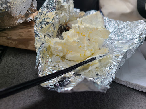 Read moreOrdered two "Everything" bagels @ 2.95 each toasted and buttered. To my surprise the total jumped from $6 to over $10. I inquired if the order was correctly heard and was told that butter was $2 each. I responded that I thought that was excessive but ok whatever, I went along with it. When I unwrapped the bagels, the whipped butter was added like it was cream cheese or "frosting". There was more than three ramekins of butter on two bagels. My wife went back and got the one ramekin in the picture to save some of the butter, but clearly she would need a few more containers. The bagels would have been perfect with the exception of the globs of salted whipped butter. I was wondering if this was normal practice or just an effort to pull in another $4. Even after removing most of the butter, I could not finish the bagel. I will know to order...