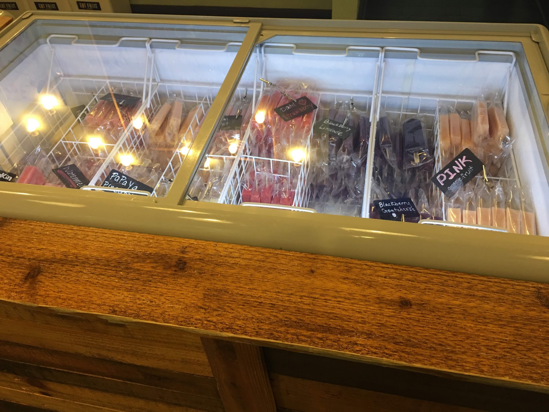 Read moreThe ice pops from this place are amazing. They only use natural ingredients, which in this day an age is practically unheard of. Some of their pops are water based, while in others they use milk. I ordered both types: peanut butter pie (milk based) and watermelon/hibiscus (water based), and they tasted equally fresh and delicious. I also had a chance to try mango and blueberry/grapefruit, which I strongly recommend if you like the sweet and tart profile. The attendant behind the counter was very knowledgeable and attentive, and while the place only had two tables and just a handful of chairs, it suffices for the little time you really get to spend devouring the pops. A plus for this particular place is the fact that some of the pops have...