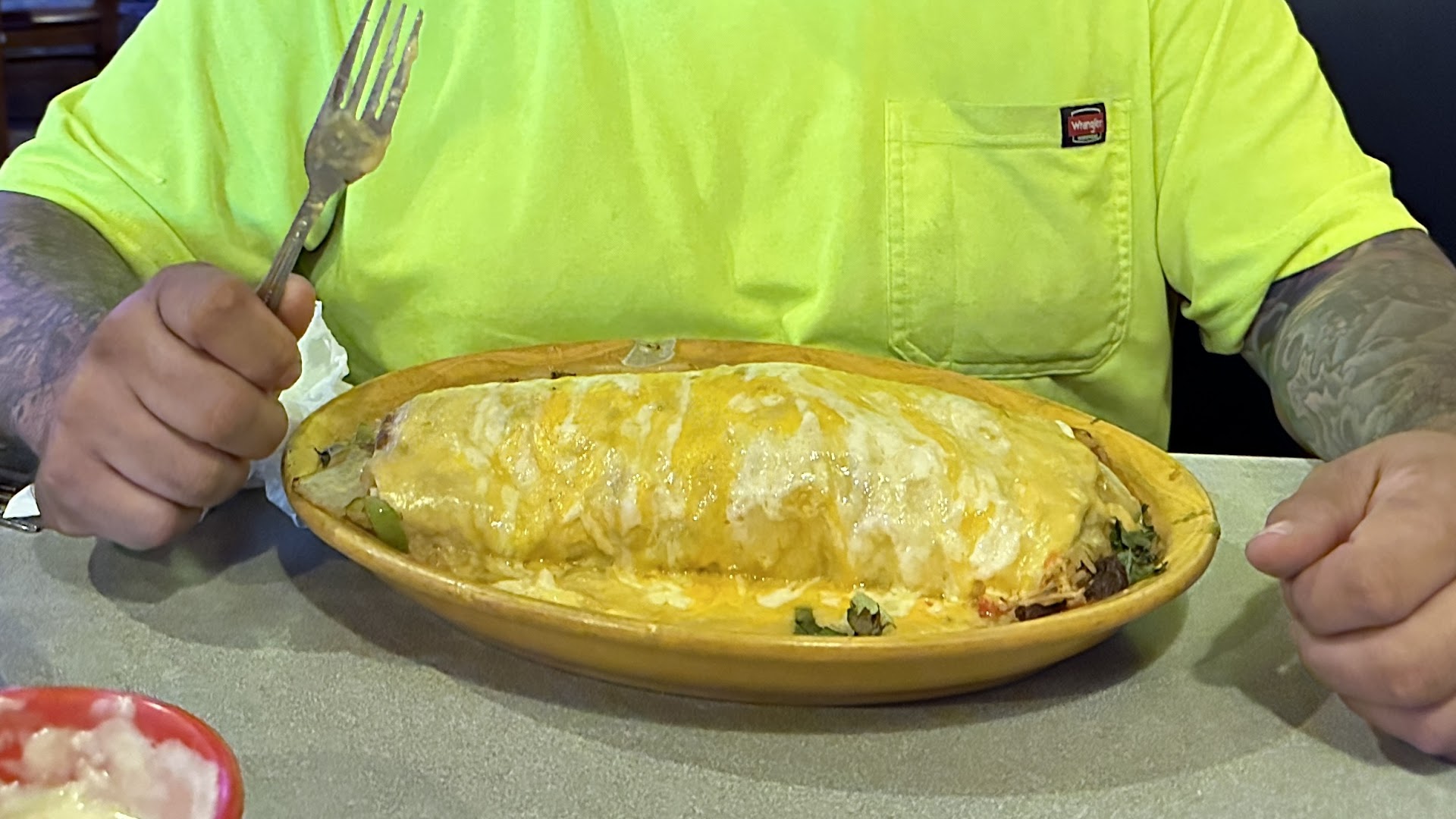 We visited this restaurant strictly due to the reviews and having a high overall rating. My wife loves tex-mex/mexican food and this place seemed like a hit. However, the moment we arrived, there were certainly some red flags. The large sign that indicated that you seat yourself, with 5:00PM only having one other group of folks there, and the two Servers in the very back having a conversation to themselves, sitting at a booth.