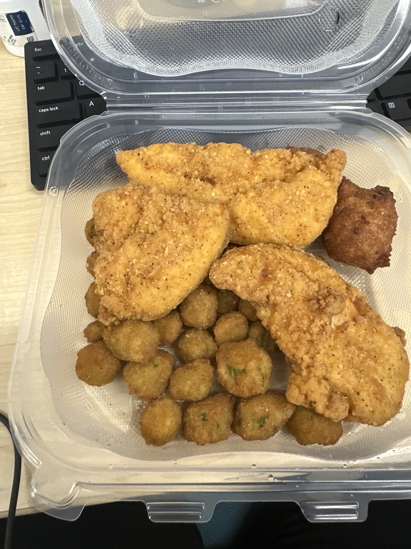 Read moreFirst, I will say that the food was really good. This was my first time visiting this location. I went online and looked up my order to get an idea of prices and the sides (I entered the order as if I was going to place an online order) Basically that gave me the total and taxâŚit was the pick two with 3 sides.. when I arrived I placed my order, during the conversation the cashier ( who was pleasant ) never told me that I couldnât changed my sides from the original coleslaw, fries and hush puppies..I had already checked the online before coming, it lets you pick your 3 sides and charge you extra for the broccoli or okra. I received my order and discovered that I only had 2 sidesâŚAs I said, online it allowed me to pick fries, broccoli, and okra as my sides with 2 proteins total 21.39. Itâs the same total the cashier gave me.. The cook who was on break (sitting on the bench) overheard me ask for my 3rd side. She appeared confused, but she cooked the fries. She came back out and told the cashier, â next time make sure you tell themâ. She walked over handed me the fries, which should have been the end of the conversation but it wasnât. I could tell she was a little frustrated but I kindly explained no one explained the policy of no substitutions even though you can do it online apparently. She placed a menu in my hand, and pointed at a random section and said and now you know. I believe she may have become frustrated because she was taking a break ( on the bench) and I came back in for clarification on whether I was supposed to receive 3 sides or not! I didnât direct this question to her . I was speaking to the cashier. Basically it would have been easier to just tell me about your substitutions before she cooked the fries. No customer wants to feel scolded just for asking about the menu . But the food was delicious. However I I do understand that inflation is a factor when dealing with food , the pick two it only gives u five shrimp and one piece of fish and your 2 or 3 sides (21.39) expensive for...