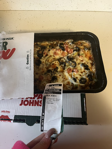Ordered a delivery tonight with five items. Only four of my items showed up. They were left outside on the front stoop of my apartment building. No contact was made nor did they try to call me, knock on the door or anything. Last I knew it was Papa John’s policy to not leave an order that they should always contact someone. I called the store immediately upon realizing that I was missing an item spoke to someone, he puts me on hold, lets me know that my missing item is gonna be sent out and while I was on hold, I was unboxing the rest of the items and realized that my papa bowl was made incorrectly. He puts me on hold. Comes back to tell me that my papa bowl didn’t show up on their side that I wanted Canadian bacon and that’s why it was incorrect. Mind you I’m looking at the box with the label that says how it should’ve been. He stated that I would now need to talk to the manager. Manager says that she personally made my papa bowl and she knows that it was correct even though what is sitting in front of me was not correct. (Photos attached) So she lets me know after essentially calling me a liar that she’s going to resend out my papa bowl “if I would like that” I said uh ya absolutely I would because I paid for it. Yet it is now two hours. My papa bowl replacement has been delivered by a gentleman who made a “nasty smell sound” as he walked in my apartment hallway (my neighbor has a dog and it’s wet out, so naturally lol) I guess not realizing that I was standing in the hallway. My original item that I was missing, which was cheese sticks have still not shown up. You will not get any more of my business and I will be contacting corporate tomorrow. We don’t eat out super often and when we do it’s most likely Papa John’s. Now I’m scrambling to feeds kids at 8pm after we waited and waited for their item (the cheese sticks) to show up! Never again! Service just keeps getting worse and worse everywhere!