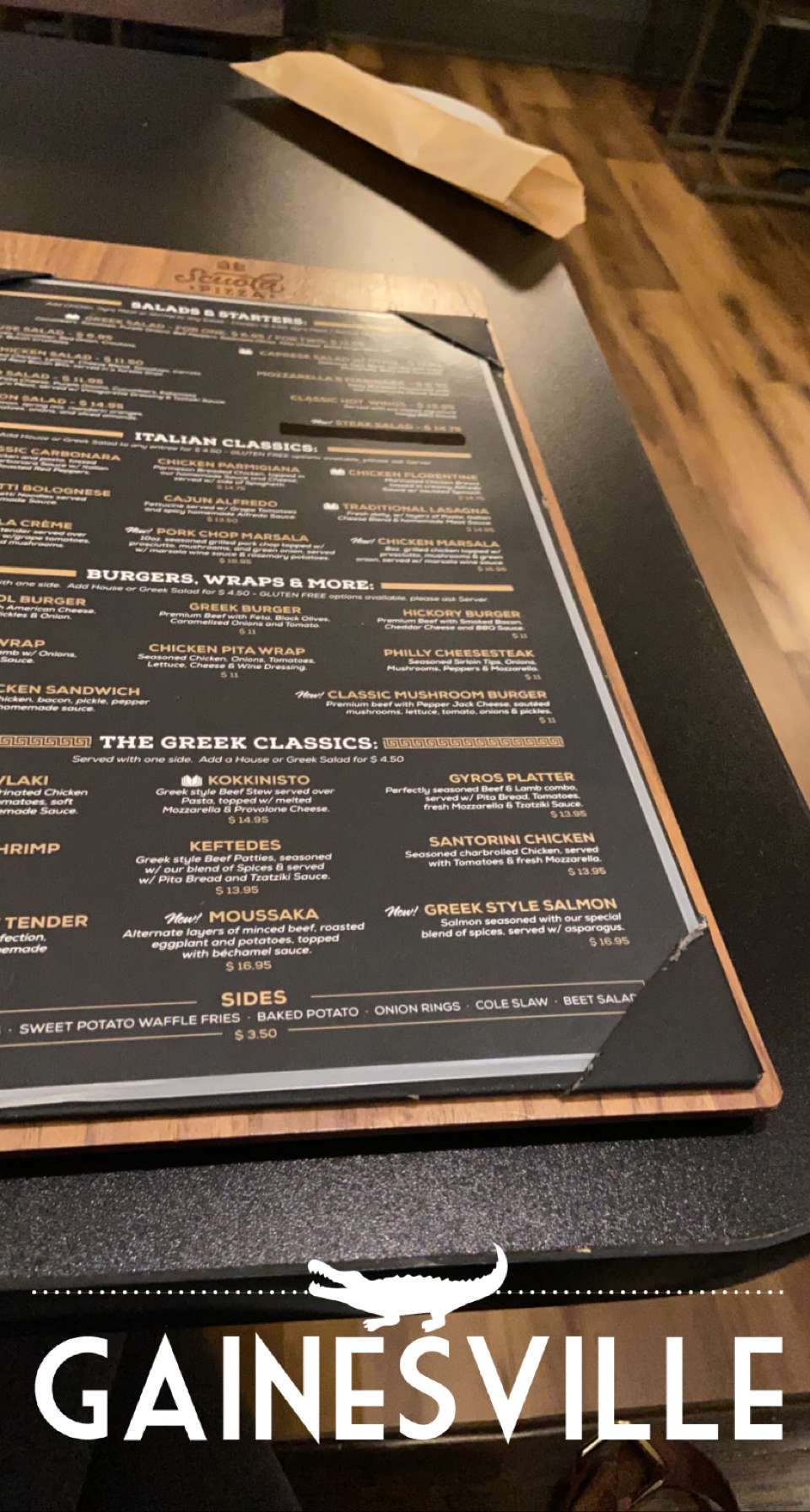 Read morePossibly the best chicken sandwich in Gainesville!! Seriously. Love the seasoned fries— the beet salad and baked potato are also good. I have had a side Greek salad on two occasions now, and the dressing in particular is delicious. I’m not big on desserts, but the baklava cheesecake is very good. A couple of disappointments: my mother’s hickory burger was overdone (we should have requested pink inside and did not when ordering it to go); also, while the cannoli filling is great, the shell wasn’t crispy at all— I’m assuming it isn’t meant to have the crunch, so just a heads up there.