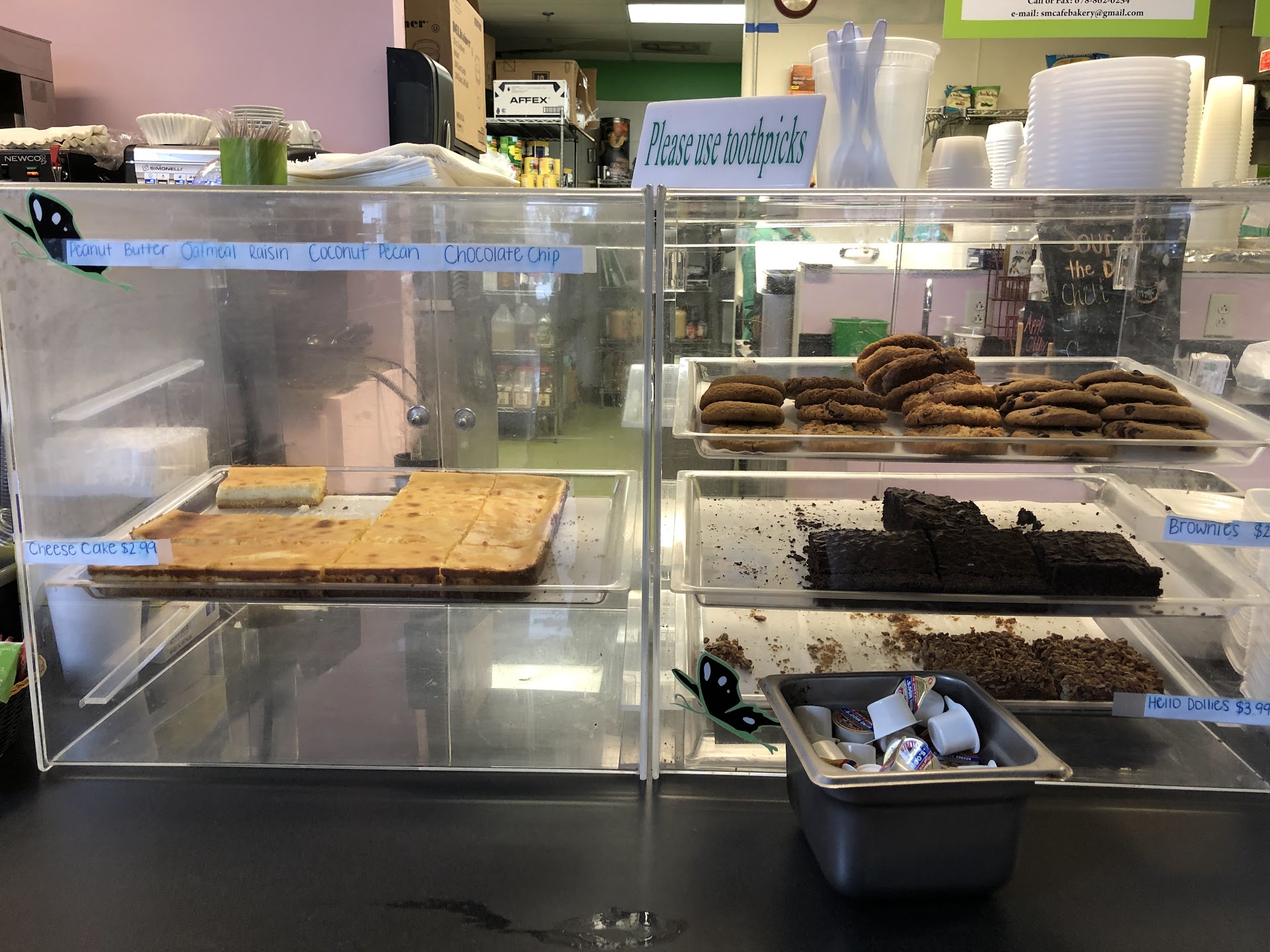 We got Rebecca’s Famous Chicken Salad Sandwich with Pasta Salad ($8.49). The chicken salad was very good. The sour dough was perfectly buttered and toasted. The Pasta Salad was too drenched in Italian dressing. I wouldn’t get that again. We also got the Turkey Club with Egg Salad ($8.49). The Turkey Club was fine. The Egg Salad was very mayonnaise-y, but it was nicely peppered. We would probably go with chips or just skip sides altogether if we were to go again.