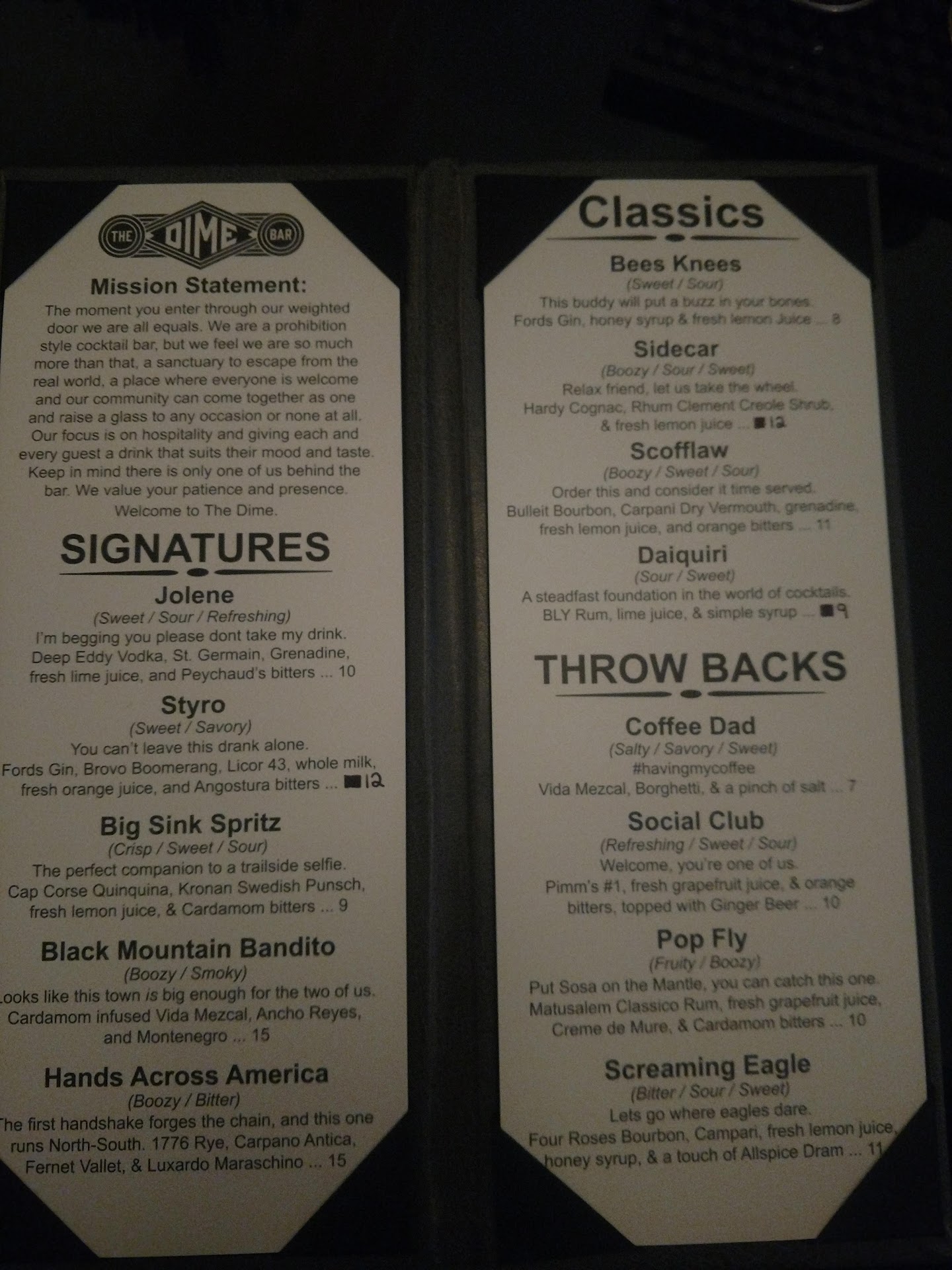 Read moreHad great experiences previously, but tonight the bartender was visibly stressed after we ordered and was throwing things around like he was having a rough night....understandable. I was considering buying him and myself a shot of his choice because of his stressed attitude, but right before doing so, some of his buds walk in and he starts complaining to them about how busy he was and how people were asking him to take shots with him (clearly they saw his stresses like I did) but he was pissed about those offers, stating he "would have to clean more glasses" during his rush and was offended (I get it), but immediately lines up 5 shots next to us and takes one with his friends and starts laughing! Meanwhile, my girlfriend and I were sitting there being ignored during our stay, even when I politely stated my drink was great, and asked what he made (I asked to make anything with rye highlighting the beverage as he previously was excited to make a favorite when I requested something similar in the past). This was all after his "rush" when we ordered, and after he relaxed there was never an apology or a thank you for the tip. I am clearly offended by his immature professionalism tonight... It's not like we haven't been served by him several...