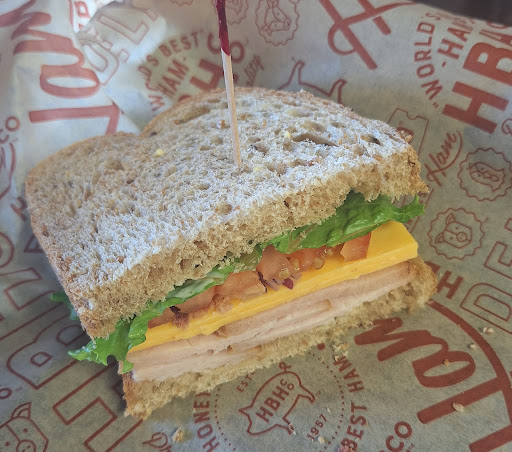 (Older review:) I wanted something different for lunch so thought I would try Honey Baked. Ordered the Bella sandwich (ham, turkey, onion and mild yellow peppers). It was great! They were out of ciabatta bread but let me choose bread and they toasted the bread I chose. The sandwich wasn't refrigerator cold but wasn't "served hot" either. It was still great. Had the baked salt and vinegar chips. Be careful driving out. Cars park too close in the back and the exit curb hasn't been fixed since the...
