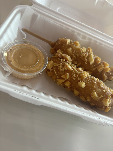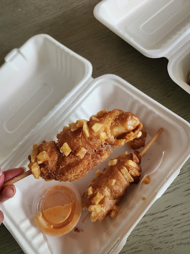 Ā Ā Ā Read moreWe ordered the grilled pork banh mi and the potato corndog that comes in a pair. The grilled pork was slightly dry and overcooked but was helped by the sauce that they put on the bread, which wasn't a baguette but a cuban so smaller than other banh mis I've had in gainesville! However, my main issue was with the corndogs. The person who served us was a little cute kid who i asked if it was possible to put mozzarella/cheese in the potato corndogs to which he said yes and also informed me that it would also have fish sausage as well. I assumed he meant a half and half and wanted to make sure it was customizable before ordering cause if it wasn't I'd choose another one that did have cheese already. Our food comes and I realized that not only is there no cheese, but it also had a good chunk of the fish sausage not even covered by the fried dough and kept falling apart easily. I went back to maybe see if it had been a mistake but an older male server just tells me that they aren't customizable and that it only comes with fish sausage because it's prepared/frozen (?) beforehand. I tried to explain the situation and he just repeated the same thing. To be fair the kid was really young and I just left it as is, but the condition of the corndogs, the lack of flavor in the banh mi, and the lack of help or understanding overall made the whole experience just ... dissapointing. Considering the price as well, would just recommend trying out the other banh mi/corn dog places...