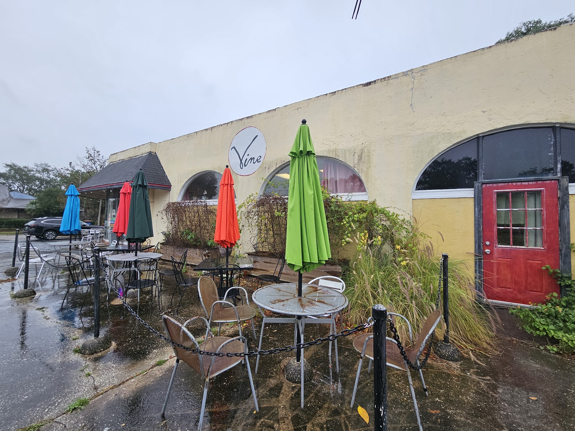 Even if it's around the newer section of Gainesville, this bakery / eatery has the nostalgic energy of a French-style vinyard café (the store name makes a lot of sense as they also sell wine here), especially with the gray stone section walls outside the bakery. The outdoor patio area was soaked since it was raining all day, and the metal on some of the furniture was oxidizing, but don't let that rustic exterior turn you away - the baked goods are amazing....
