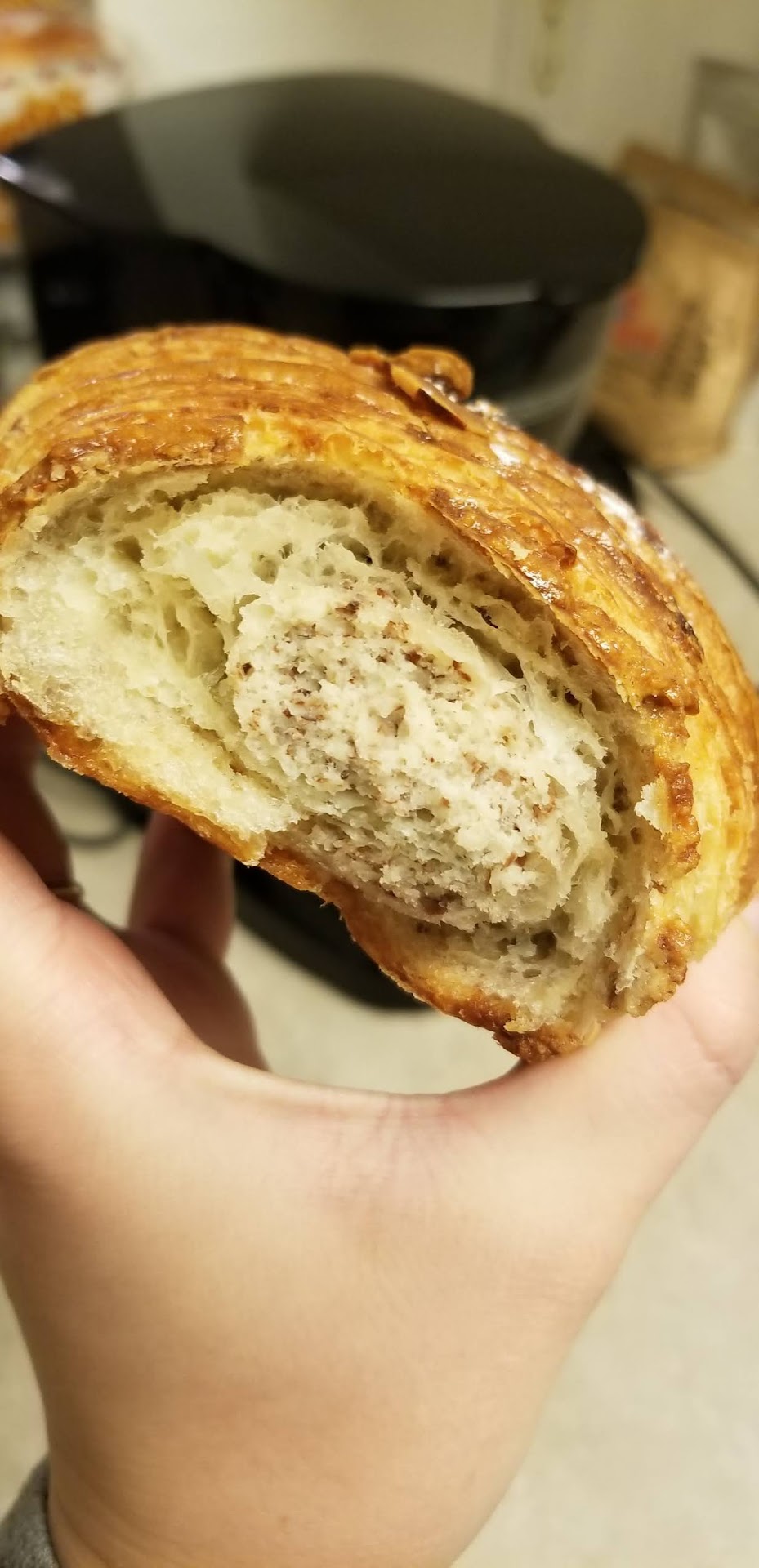 The baked treats looked great and were slightly low in supply already despite the gloomy weather. About 3 people were sitting and eating in the small café area, and there was 1 customer who was in the store waiting for us to finish.