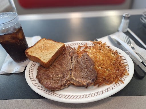 Read moreWe were craving Waffle House and you guessed it, we met our cravings. If you’re looking for a nostalgic and some southern with a twist diner vibes, if you know what I mean lol. We ordered the all star breakfast, which comes with your choice of grits or hash browns, choice of meat, and waffle. And we order the two eggs and meat breakfast which comes with hash browns, and your choice of meat. It also comes cheese, but we subbed onions and mushrooms. Service was pretty good, our server was fast, and joked here and there. Kept the atmosphere light despite the chaos of customers coming in and out, the cooks and servers, busboys cleaning… overall, a good experience. If you’ve never been to a Waffle House, don’t expect it to be super clean, because they are open 24 hours. But if you’re down for breakfast all day, or a whit bite at any time of the day, this is the spot for you. Great for small or large groups. Till...