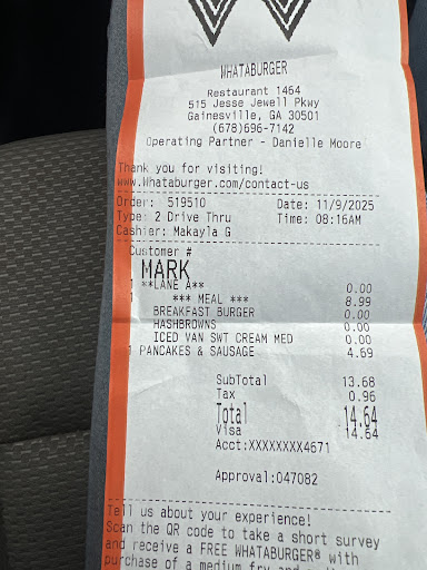 Read moreStore is very small. Took 14 minutes to get my food to my table. They bring food to your table. My burger was excellent. The drinks are terrible. Tea and Sodas like Coke because they DO NOT use Filtered water. Therefore if you live in Gainesville you know what Iâm talking about. The water here taste terrible. Taste like sewage smells. My neighbor warned me of this before I came. He had eaten here yesterday. Said Coke tastes awful and it does. They need to put a filtration system in place. Otherwise I thought the Food, my double cheeseburger Jr. was really good. I normally do not eat burgers out at restaurants because usually they have no flavor. I have to say this burger today was excellent. I ate every bite of my burger and fries. Fries are just ok, nothing special. Room for improvement but In my opinion the burger...