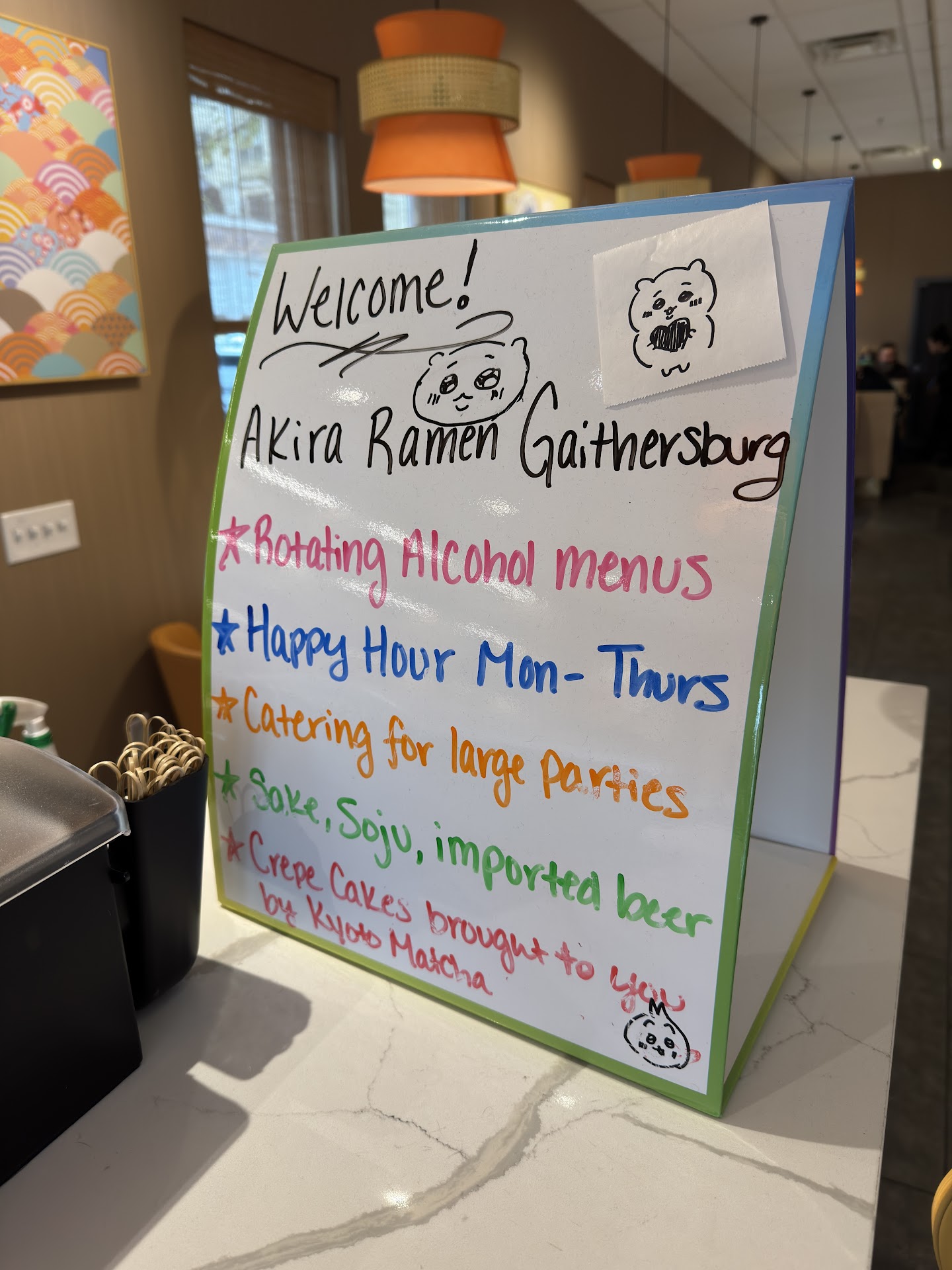 Excellent new location, Iāve been to the Rockville location dozens of times and this place is the same high quality ramen you can expect from there. For newcomers, the Akira broth is very flavorful; Iād say itās the best broth in the DMV area. The extras are phenomenal as well: the meat has a very nice smokey flavor and the seasoned egg is delicious. DO NOT OVERLOOK DESERTS. Weāve never tried their deserts out of habit of never getting desertsā¦. And weāve missed out on the taiyaki. It sooooo good, AND fried fresh on order.