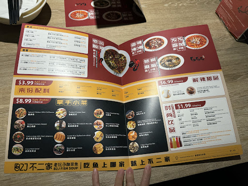 Read moreSome pretty outstanding fish soup. Don't let yourself get fooled by the slightly random / nonsensical name (even the Chinese name makes no sense to me -- what on earth does "no second / two house / family" mean?); B2J Fish Soup is home to one some of the best authentic Chinese food in the DMV. As the name implies, they specialize in fish soup, particularly a hot and sour pickled fish soup (suan cai yu) that originates from Sichuan. This dish was one of my childhood favorites, and B2J did an incredible job crafting a deeply flavorful soup that transported me right back to my family's kitchen. The soup is served in the largest bowls I've ever seen and absolutely loaded with pickled veggies and tender, flaky fish that completely soaks up all the spicy and sour flavor. I appreciate that the soup isn't overly spicy or salty, so it's possible to drink the actual soup instead of just fishing out its fillings, and it goes great with the side of white rice.