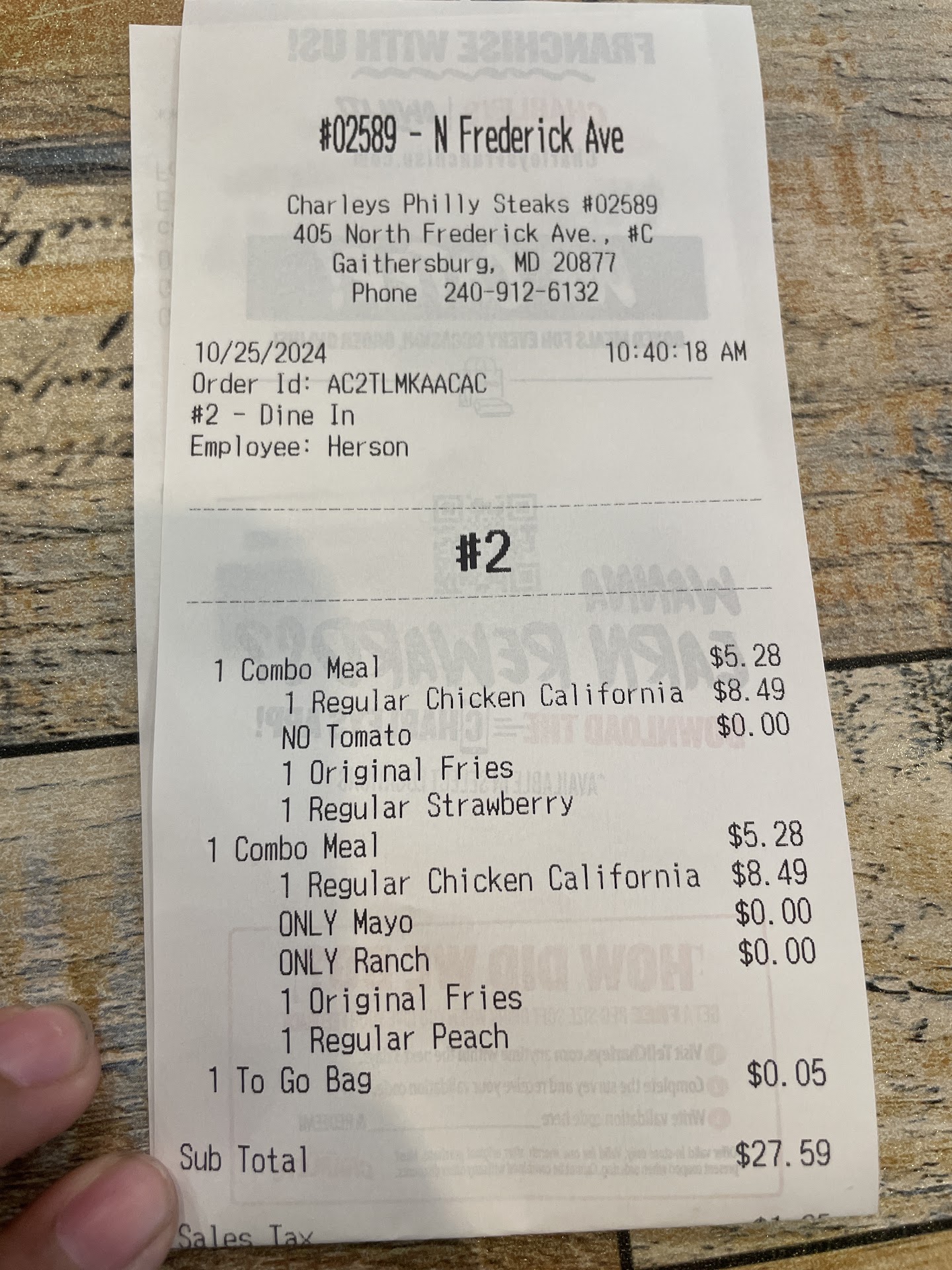 Read moreFirst informal I’d like to say that the food was amazing and so was the service. but my problem is the atmosphere. I’ve gone twice and it seem to appear that they have no type of air conditioner just fans. I love Charleys therefore this concerns me because there’s employers working uncomfortable especially in this heat during the summer. I’ve asked a worker how long they been like this and responded saying about a while…. I’m sure they’ve said something to the ones in charge and seem like they ain’t doing nothing to it. As a citizen I don’t want to report this to Marylands inspectors, but if I have to I will. No one should work in those conditions especially when they dealing with...