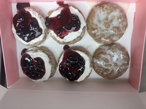 I have never had a good experience here. This location is the closest to my office so I go here frequently, however I have never been greeted/acknowledged by an employee when I walked in. My first trip, I ordered a box of 6 minis, which were intended as a gift, and received a box completely covered in grease and no "thank you" sticker, which was an up charge. A few months ago, I placed an order for two dozen cookies three hours before I wanted to pick up, but still waited an additional 30 minutes before receiving my order. I wasn't acknowledged by a single employee for 5 minutes after arriving, and most employees were just standing around. After an employee asked for my name, they proceeded to help 3 customers before me, who arrived after me. Once I received my order, it was completely covered in grease, frosting, and raw cookie dough to the point that it stained my fabric car seats. Most recently, I ordered two cookies in store, the credit card machine was completely broken, which meant I had to manually type in my credit card information on a large screen in front of several other customers. When an employee brought the cookies to me, she walked away while I was talking to her about my order. She completely turned her back while I was speaking and sent over another employee to help me.