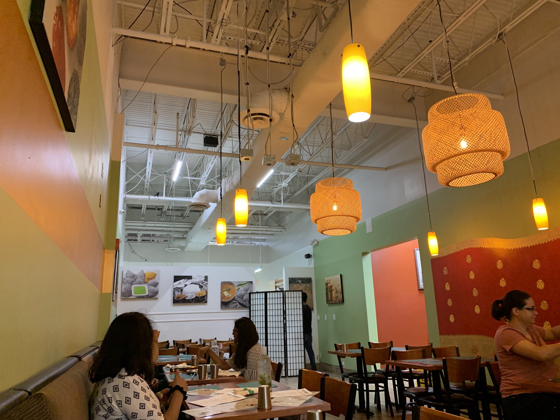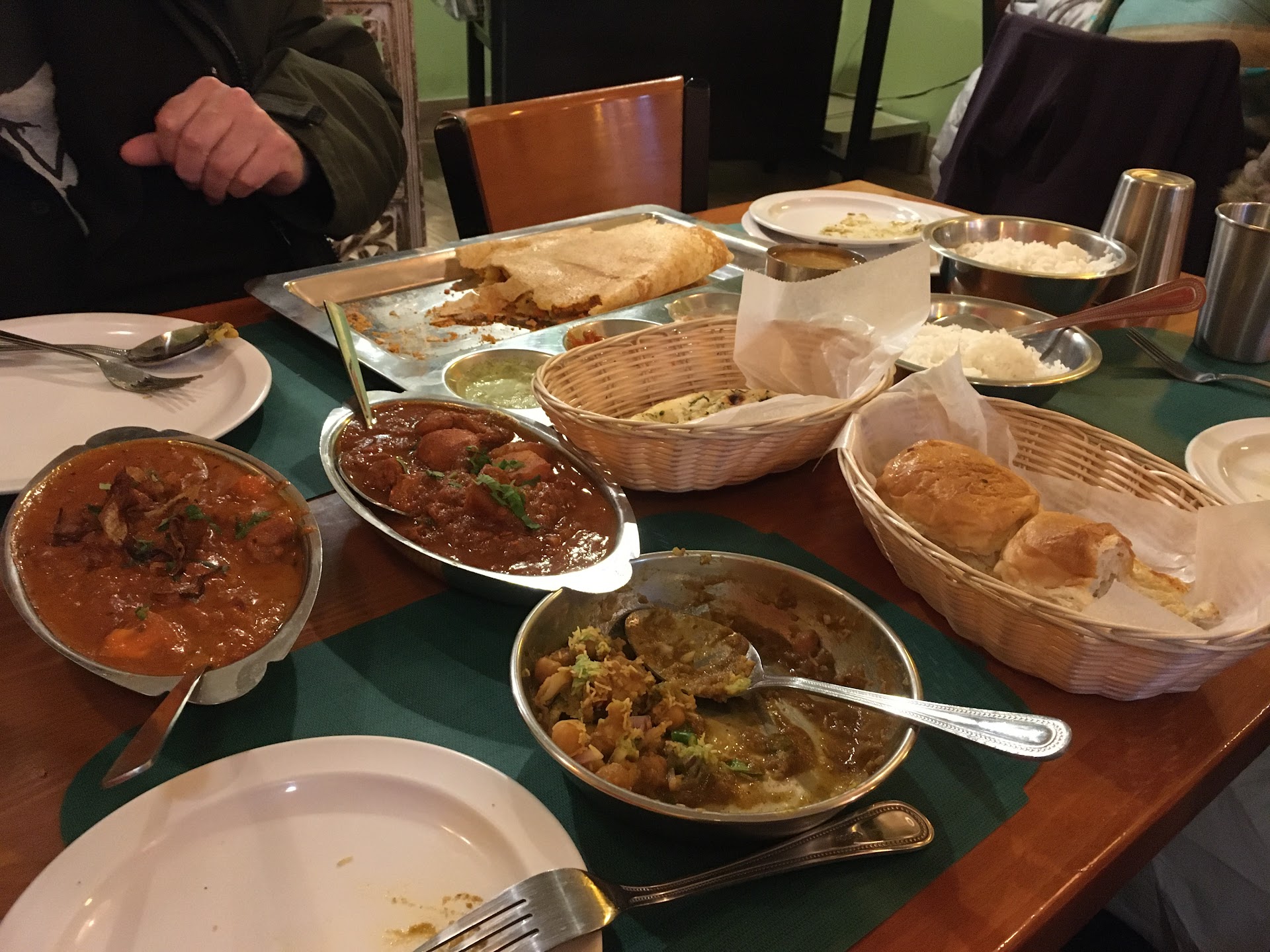 Came for dinner without reservations, and quickly felt that making one would have been a good idea. Thereās a screen blocking part of the restaurant from the street and all I saw was a long table filled with people who appeared to be of Indian ethnicity. My pace quickened in anticipation; would there be a table available at an establishment receiving such a resounding endorsement? One of the waiters held the door open for me as I approached the entrance. Thankfully, he warmly welcomed me to one of the last two tables behind the screen. 6:00 pm and the place was packed. We ordered their non-appetizer samosas and a Dosa for appetizer. The samosa was covered in a spicy chickpea sauce that encouraged you to keep coming for more. Only downside was the temperature of the dish which was a little lukewarm. The Dosa, being the namesake, had to be good. It was. I probably had no idea how to eat it, because there was great difficulty using the 4 provided sauces. It was like a massive paper thin burrito shell filled with samosa filling. A fun party dish - expect to eat with hands. For the mains we had chicken vindaloo and chicken... the subcontinental speciality one. Both were excellent if on the salty side. Also ordered garlic naan which was very flat and rather hard - a bit disappointing. Also ordered the Pav bread, which was lightly roasted potato rolls and surprisingly more satisfying than the naan. All dishes had the option of mild or hot. Hot is about Thai pepper hot, mild is not spicy at all. Cups were metal, stainless steel maybe. Water was served in a carafe with a few spirits of mint, but the mint didnāt seem too prominent. Plates were plastic. Ceramic would really make the experience feel more refined. Some dishes tasted to salty. No knives, and maybe Iām eating some of the dishes wrong, but a few extra spoons could help. Some classics are missing such as malai kofta.