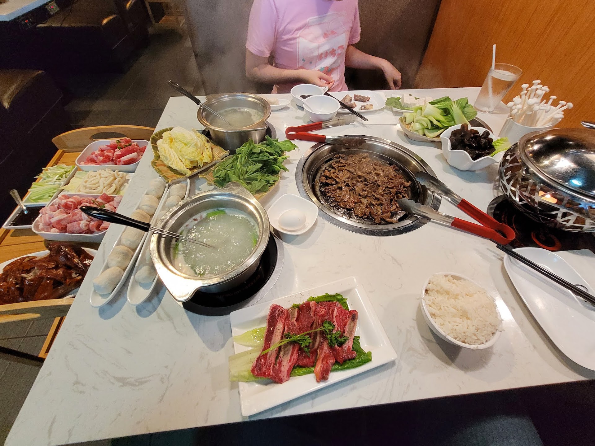 Read moreHorrible horrible horrible! Terrible service. The worst hot pot/korean bbq I ever been to. The service was horrible. Our waitress was the worst. We decided to go with the Korean bbq instead of the hot pot. It was our first time here and Our waitressed did horrible job on explaining the menu and explaining things to my wife (it was her first time trying hot pot and Korean bbq) The food came out 30 minutes later after we place our order the food is Uncooked so there no reason why the food should’ve took that long. Since we cook the food on the grill. (People that came in after us got their order first) and on top of that our waitress was bringing our food order little by little. So we cook the chicken for our son Because he was really hungry. We were all really hungry after I cook the chicken. The grill pan wasn’t cooking anymore and our waitress walked by a few times didn’t care to change it or check until I called her and said something about it. I had to call our waitress a lot of times for refills on water and soda when my wife ask her for another soda. She brought a new glass with no ice. Instead of the soda. We asked for xtra napkins never brought us the napkins forgot all about it. The food was OK. The duck was average Nothing special about it. I have had better duck in New York and DC. But my favorite part was when the bill came and we pay. first she told me that I didn’t gave her enough (which it was a lie)she just didn’t count the money properly lol then she told me the total after she counted the money properly this time and realize I gave her enough money. I’m guessing she was expecting big tip for horrible service lol i usually tip good cause I used to work in the food industry back when i was a teen. i dont tip for horrible service. Food was average and not worth the money. Save ur money and eat somewhere that values their customers. They lack...