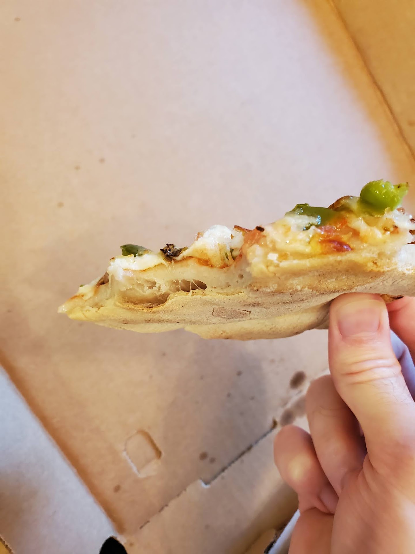Food review now: Pizza was actually good! If anything too much topping. Calzone was excellent BUT we were surprised it was actually DEEP FRIED rather than cooked in the pizza oven which was a surprise. Eggplant parm was disgusting. Layers of fried breadcrumbs attached to a hint of a prosciutto thin slice of eggplant that ended up tasting like a deep fried, soggy slice of toast. The worst thing was the overpowering taste of, I dunno, 4 or 5 days old frying oil seemingly used to...