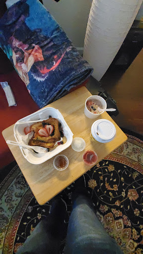 Unfortunately a buck won't get you anything here so just know what you're getting yourself into and be prepared to pay a premium for a cool logo and mediocre food. There was also no butter included but it did come with whipped cream syrup and berry compote which I...