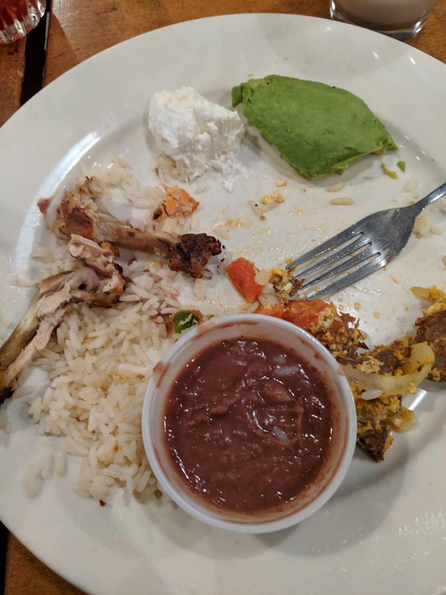 For entrees, I'd recommend the Pollo Frito and Casado. The Pollo Frito consisted of fried and well-seasoned 1/4 chicken served with curtido blanco (coleslaw), house salad with creamy Italian dressing, and yucca fries. The yucca fries were thicker than normal. Some of the pieces could have been cooked more. The Casado consisted of seasoned chicken stewed with potatoes and carrots, served with white rice, whole seda beans, fried ripe plantain, and house salad with creamy Italian dressing. It reminded me of a meal I had when I visited Cancun and Chichen Itza.