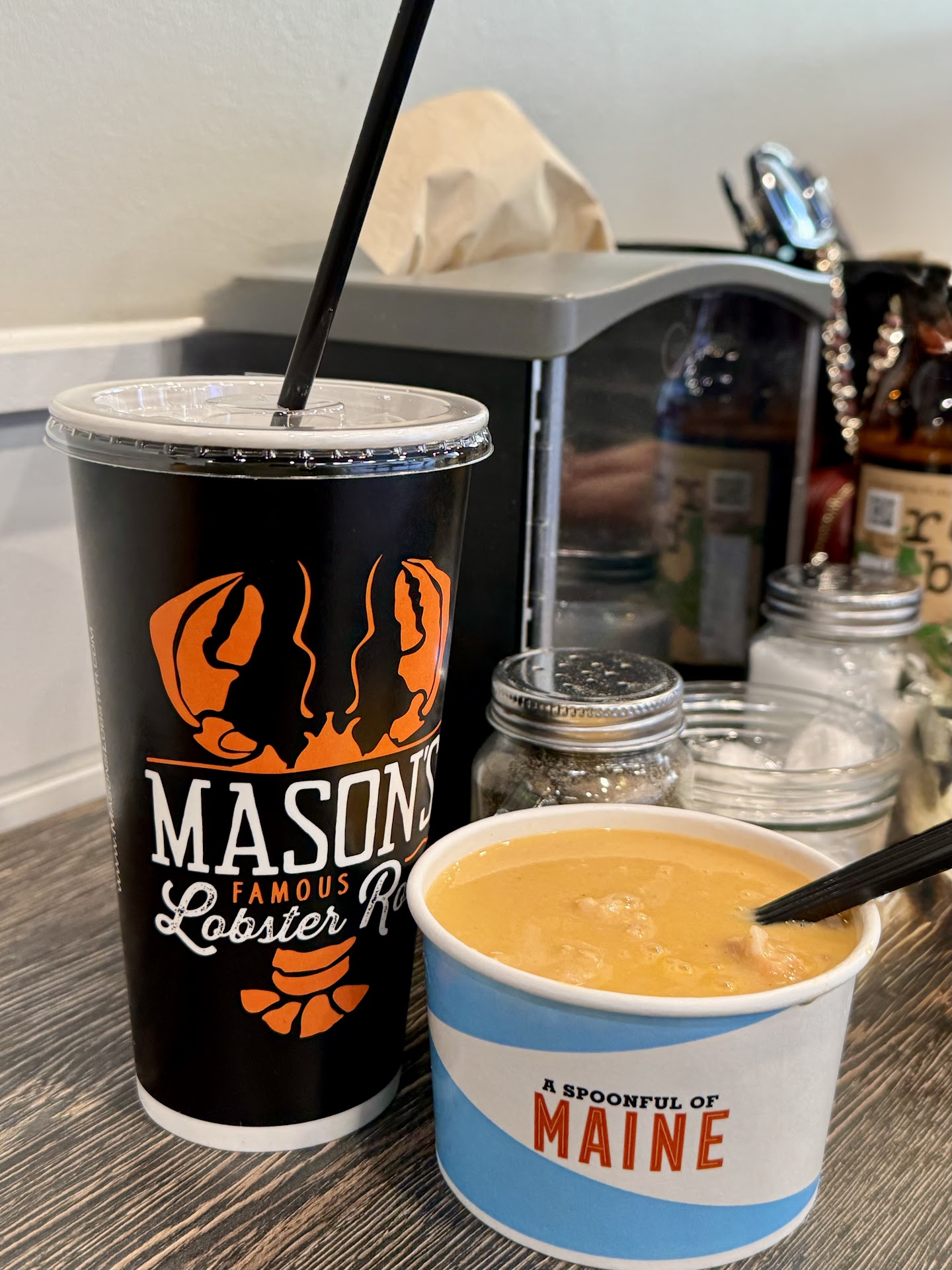 Now to the food. My wife doesn't like lobster and was actually just going because I wanted to try it. She ordered a hot dog and tater tots. It's a hot dog. It was fine. She enjoyed it. For the main event: the lobster roll. I was hesitant about how they could have quality lobster rolls year-round. I have a regular place I go to, but they only serve them from Memorial Day to Labor Day. So, I thought I'd try Mason's. I have the answer to my question. They do not have quality lobster rolls year-round. I ordered the CT roll, thinking it would be a warm lobster roll. The lobster was piping hot and overcooked, as if it has been microwaved. I don't know where the butter was. It didn't come with any and no lemon. If the butter was on it, it disappeared from being so overcooked. Also, there was barely any lobster. My normal place uses 1/4 lb. per roll. Since I had never been here, I wanted to try the regular (as opposed to the Bar Harbor option) to see what it was like. Why pay more if the regular one has enough? Well, it's very skimpy. If I were planning to go back, I would try the Bar Harbor. But, I will not be returning. The service is crap, and the food is less...
