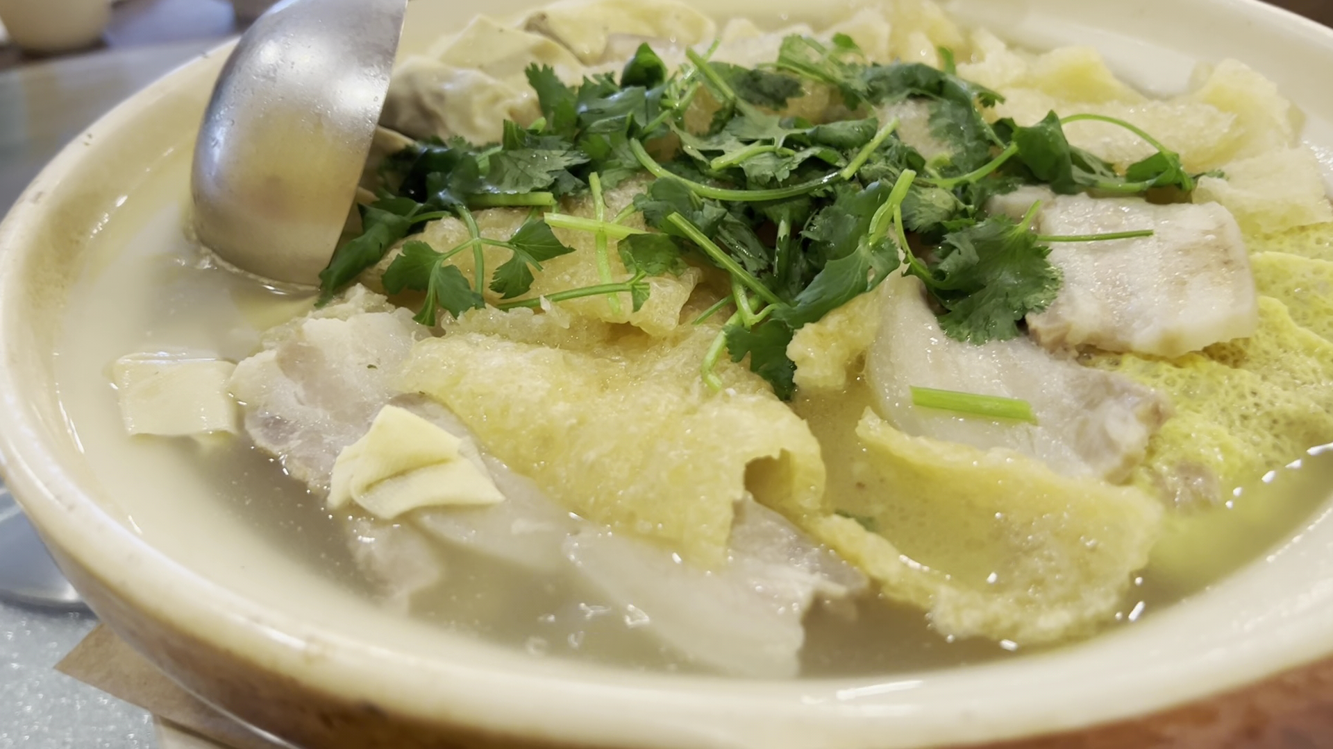 Combination in big casserole: the soup was soooo good! It was made by slowly boiling of pork bones. It doesn’t matter what were in the soup, they were all delicious.