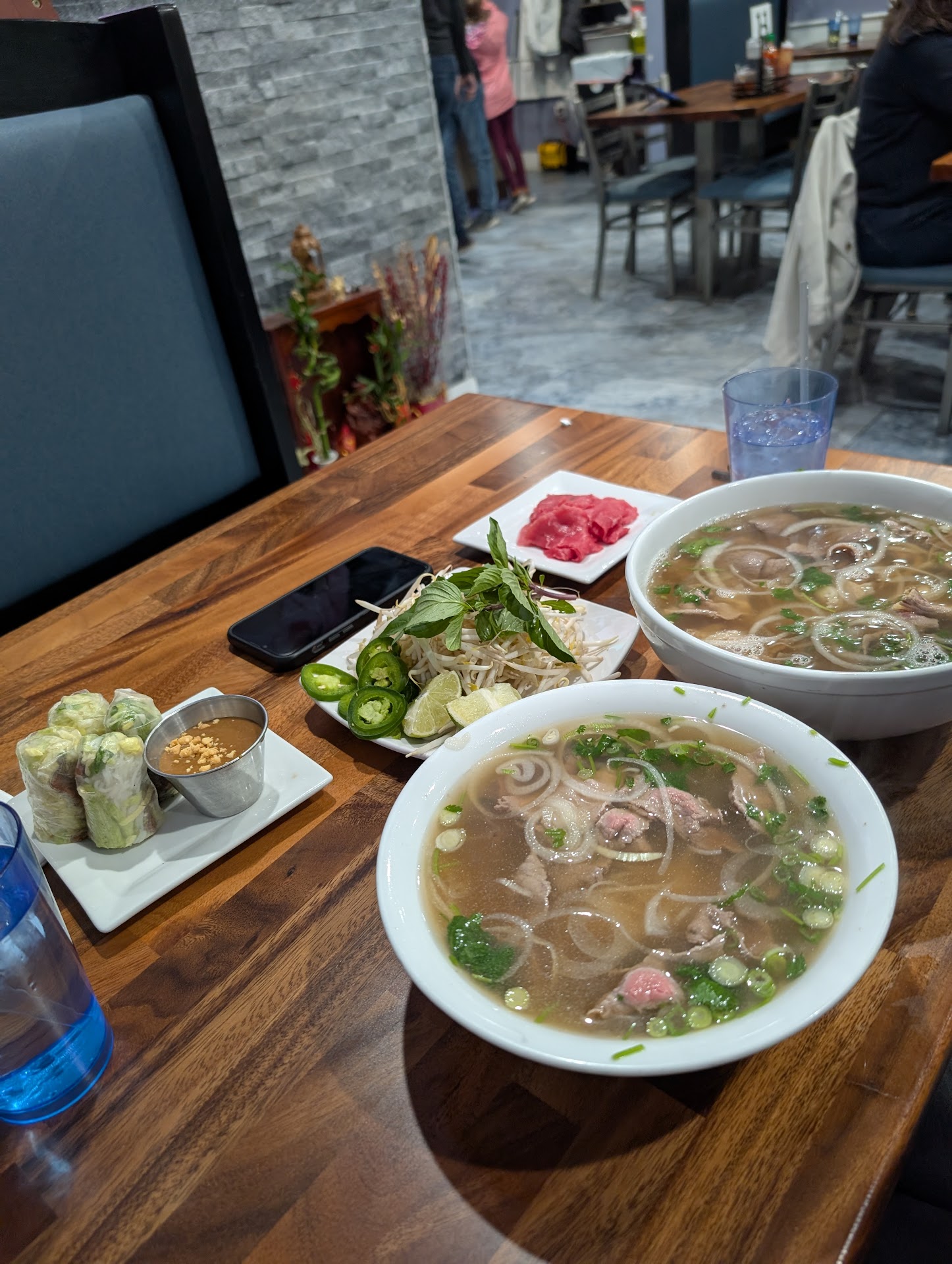 Let's start with the pho – absolutely fantastic. The broth was rich and aromatic, clearly simmered for hours to develop that deep, satisfying flavor. Adding a squeeze of fresh lime, a few sprigs of basil, and a touch of their garlic chili sauce really elevated it to another level. I appreciated the different size options. The spring rolls were another winner. Perfectly crispy and light, with a filling of fresh, vibrant vegetables. You could taste the quality of the ingredients.