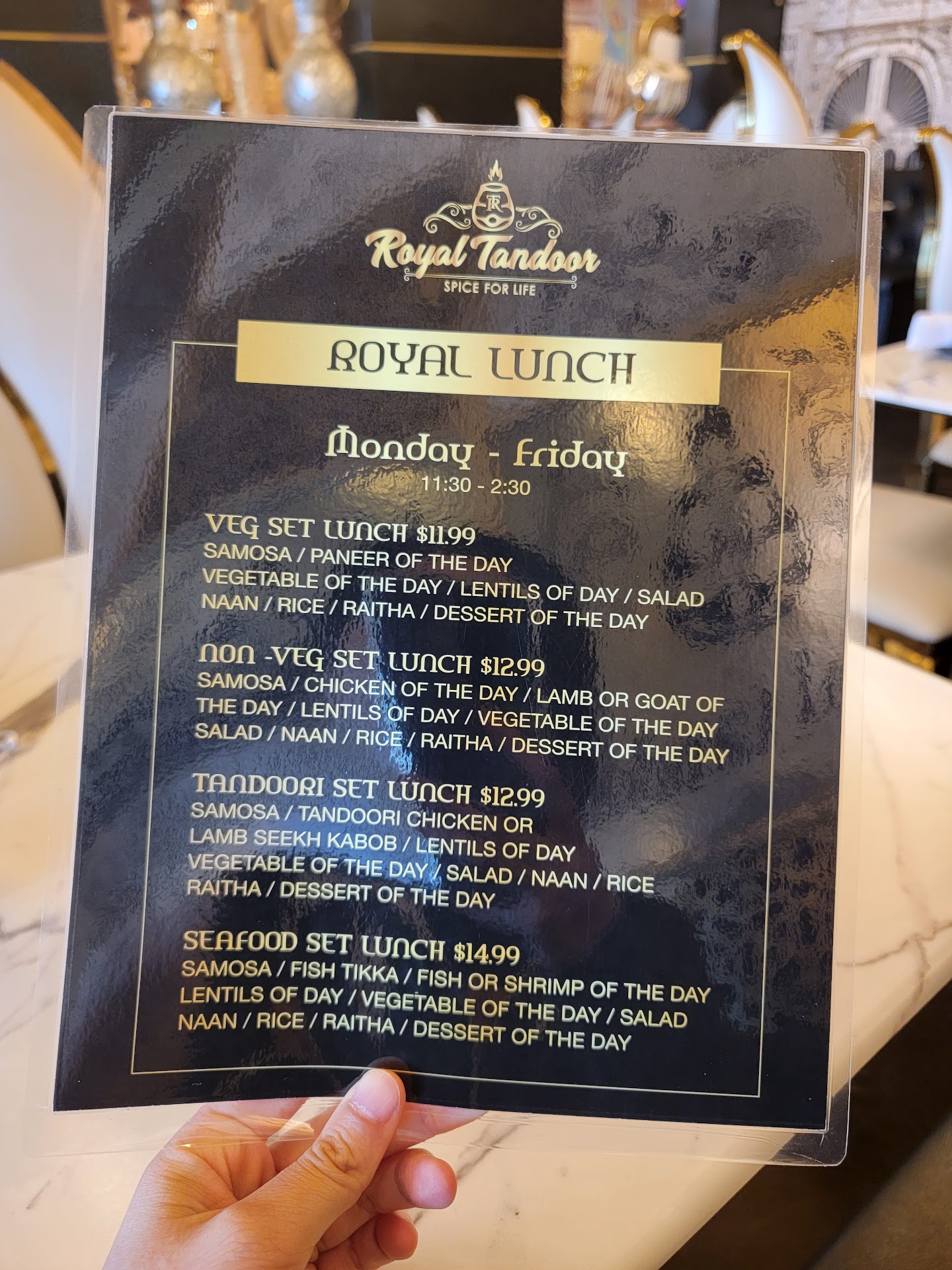 Read moreToday, Brendan and I got the opportunity to check out Royal Tandoor for their Royal Lunch, which is served Thali style, Monday through Friday 11:30am to 2:30pm. They have four variations: Veg Set Lunch, Non Veg Set Lunch, Tandoori Set Lunch, and Seafood Set Lunch. All sets were reasonably priced ($12-15 depending on protein) and are served with Samosa, Lentils of the Day, Vegetable of the Day, Salad, Naan, Basmati Rice, Raitha, and Dessert of the Day.
