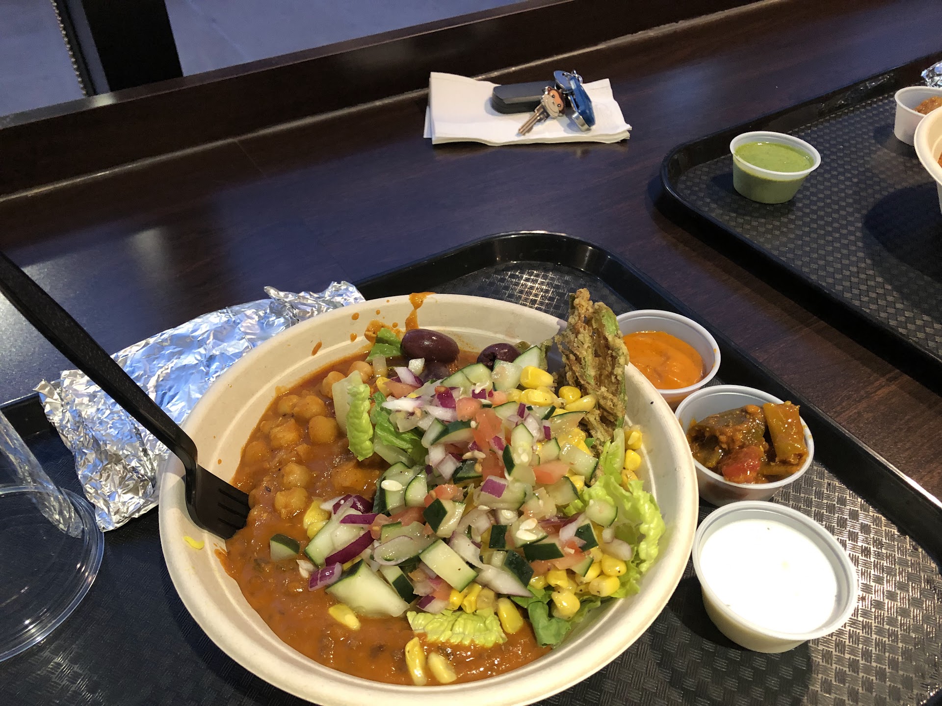 Read moreI learned about this place through Yelp and it was on my list, so when the opportunity came up, I was excited to try this place, but also slightly skeptical. This is a make-your-own-bowl kinda Indian place, and I have tried a similar style Indian food in the past with disappointing results. As soon as you enter the restaurant, the cleanliness and amount of space stood out to me. This place can accommodate many small and big parties of people. The food is North Indian, so if you are even slightly familiar with Indian food, then I am sure you will be comfortable creating your own bowl. I chose to create my own vegetarian bowl and got a piece of naan on the side. You can also ask for raita (yogurt dip), fresh cilantro chutney and pickles (Indian vegetable pickles) on the side. Again, I was slightly skeptical, but all the ingredients came together very well and I was very impressed! It was a delicious bowl of the food I loved and ate till my food baby tummy was visible. The quality, quantity and taste of the food justifies the price of the bowl. Check out...
