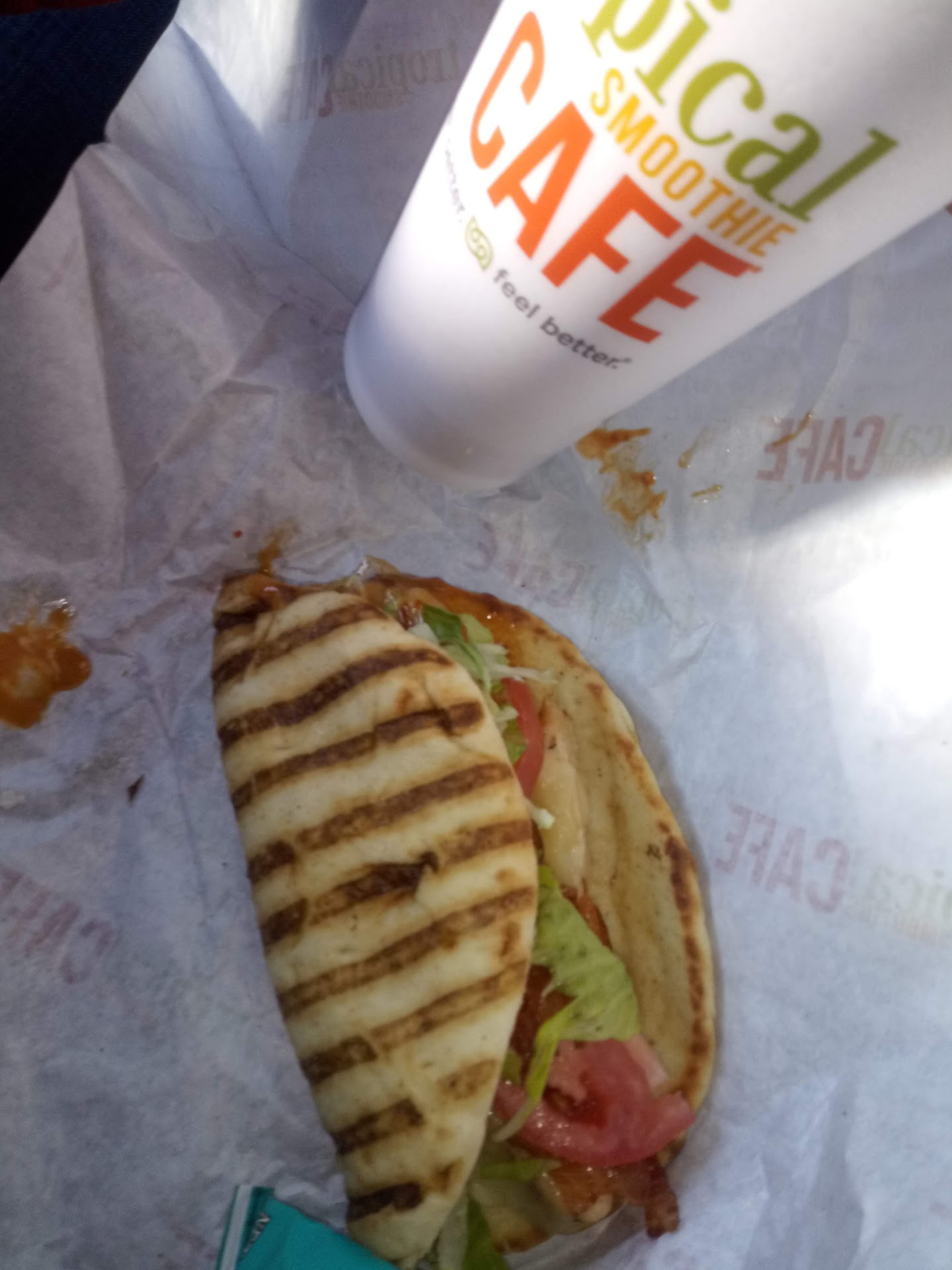 What a wonderful place !!!! I am a huge observative person when it comes to restaurants , customer service and food. Every restaurant I go with family or friends I always find something that disappointed me but this place was omg the whole opposite thing . From arriving to leaving. The staff was always smiling (very busy) but always interacting with customers and giving their best at every moment. The Managet Rafi was phenomenal WAY TO GO!!! An outstanding leader , he was so on top of the game with customers and his team , like you would know that heās the leader (not the manager or the boss) the LEADER!!! The restaurant was spotless, music on point , atmosphere was so comfortable, great flow with customers, no bottle necks at all, everything was so smooth. Food was absolutely delicious and the smoothies the most refreshing healthy one Iāve had. After coming from my sons soccer game , one of the coaches said letās go to eat at Tropical Smoothie Cafe and I was like āBoy I want real foodā and surprisingly your food didnāt just met my expectations on flavor but on calories since I always track what I eat and you were actually on my app menu āin loveā I know this is a big review, Iām happy you guys exist , this is what I call eating amazing food at an amazing place with amazing people !!!! Thank you Keep it up...