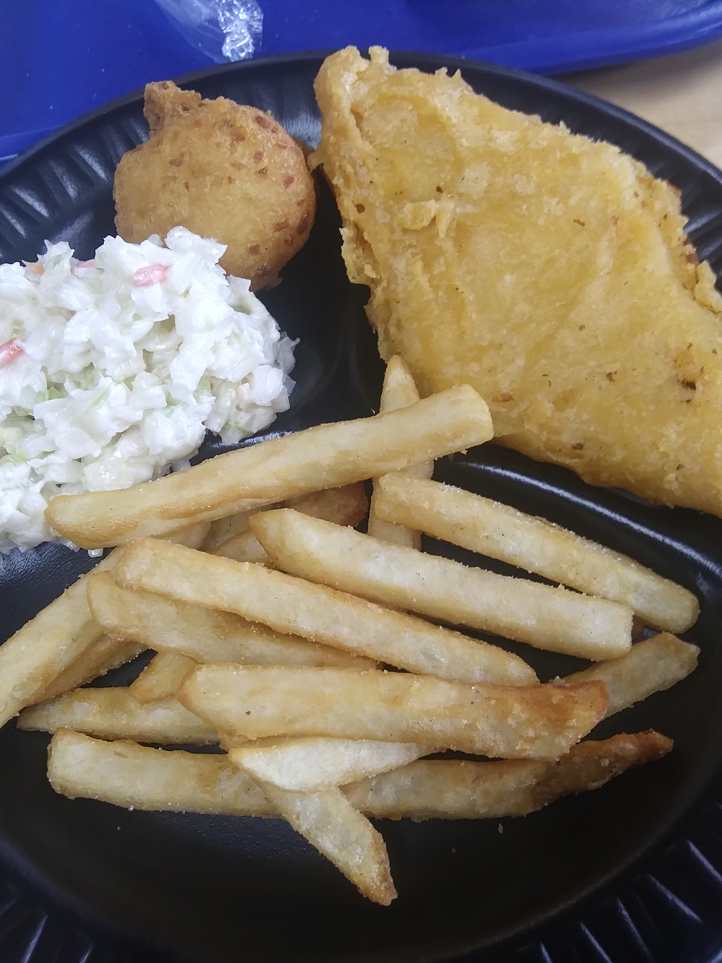 Read morePretty sure I was the last customer of the night when I came but that's still no excuse for my waffle fries being old and hard to chew, my hush-puppies were the same as the fries. The coleslaw was okay besides the fact that there was like giant pieces of cabbage in it and it was slightly dry, only thing that was fresh was the fish and I would have preferred it to be less greasy. The reason I'm giving three stars and not two is because the customer service was very professional and the cheesecake was phenomenal (even though I'm pretty sure they don't make it, lol) My overall point is whether you're the first customer or the last customer all of your food should be fresh, isn't that...