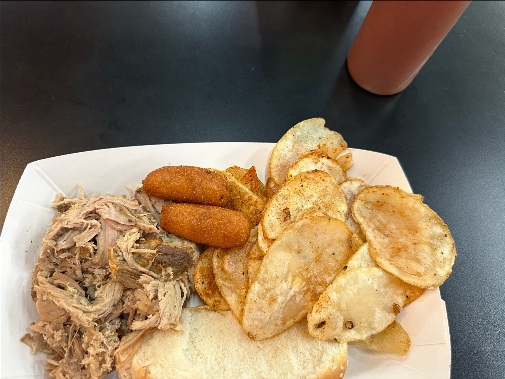 I picked the Galax Smokehouse for a late lunch during the Hillbilly Dayz street festival. There were a few other diners when I went in and all tables were full except one when I was leaving. I was promptly greeted and taken to my table and my drink order was taken. I needed a little extra time to peruse the menu before deciding on a small pulled pork barbecue platter. It came with one side and I chose fried potatoes which were the most flavorful fried potatoes I’ve ever had. I think they were sprinkled with seasoned salt but I’m not sure what gave them the special flavor but I thought it was delicious. The potatoes were thinly sliced and cooked to have a little crunch but not hard and dry. The pork barbecue was moist and tender with no visible fat. It had a good flavor and the addition of the sauces brought out the flavor. The hush puppies were what I expected and had a hint of onion flavor. The outside was crunchy with a moist inside that was cooked completely but not dry. The bread was like a piece of Texas toast that had not been toasted. It was soft and had a pleasing taste. I got unsweetened iced tea (because I have Type 2 diabetes) and it was very good. It was the correct strength and not watered down. My food was served very quickly and the wait staff was attentive and helpful. I wanted to try their FAMOUS banana pudding because Southern Living magazine had featured it. On my first bite I recognized banana flavored pudding along with soft vanilla wafers. The bananas were the right consistency and not overripe. It was topped with a swirl of whipped cream. It truly was fabulous. My entire dining experience was pleasing and I was happy with the quality of the food and the...