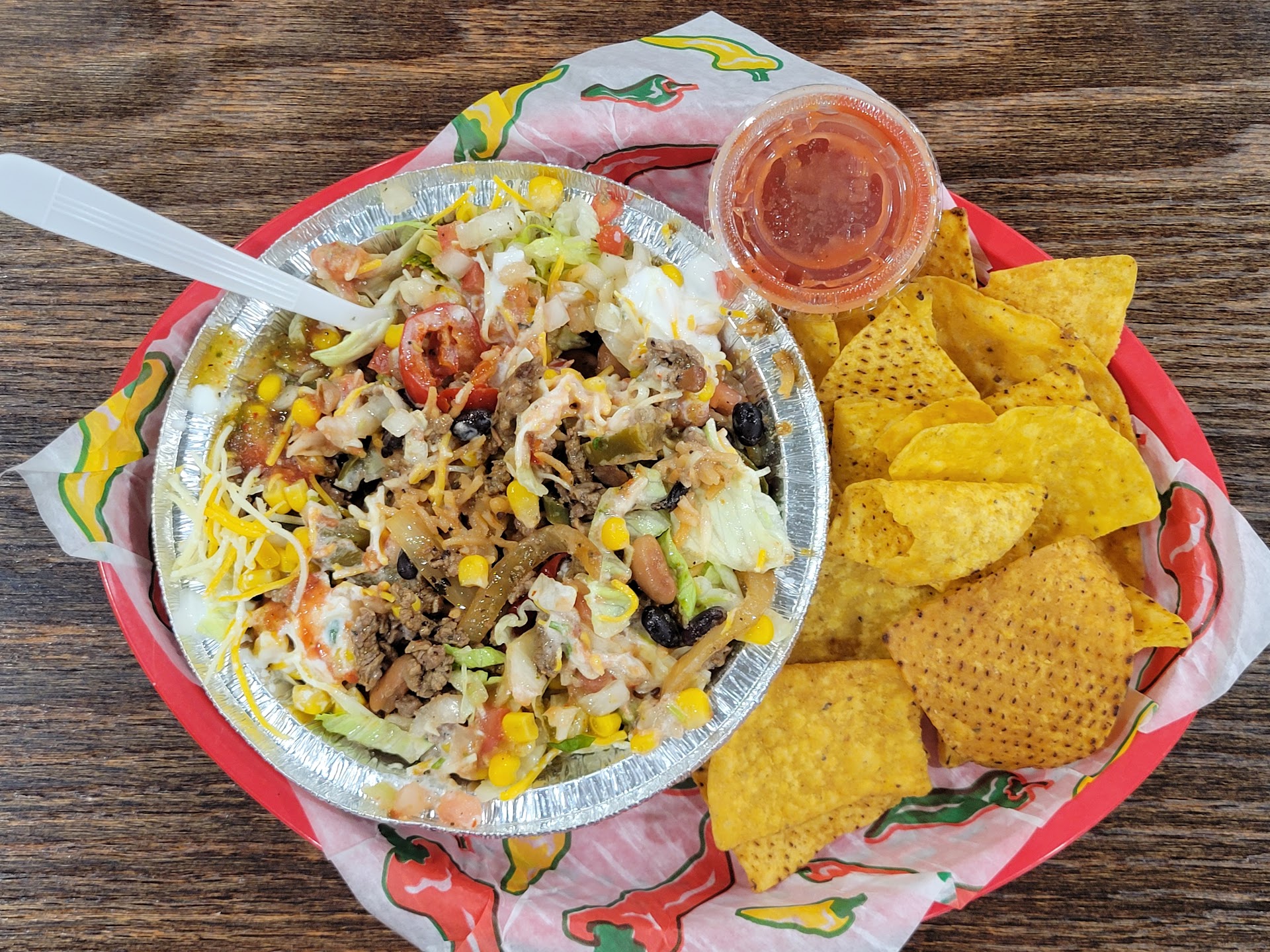Read moreThe burritos were huge!!!!! Made to order & fresh. Lots of places are closed in historic downtown on Wednesdays & we didn't want the hassle of formal dining & crowds after a day of hiking. Picture a Subway, but BURRITOS. You shuffle pass the display window & point to all the stuffings. You don't even need to speak English. There's a great selection of fillings, all with the total price of just $7.99. We both had the steak. I added, spanish rice, salsa, queso, sour cream, beans, tomatoes, lettuce ..... Definently need two hands to pick these up. Recommend highly! Unless you need booze with your meal. Otherwise you can order pickup. Oh ...... and your burrito comes with chips & salsa (mild,...