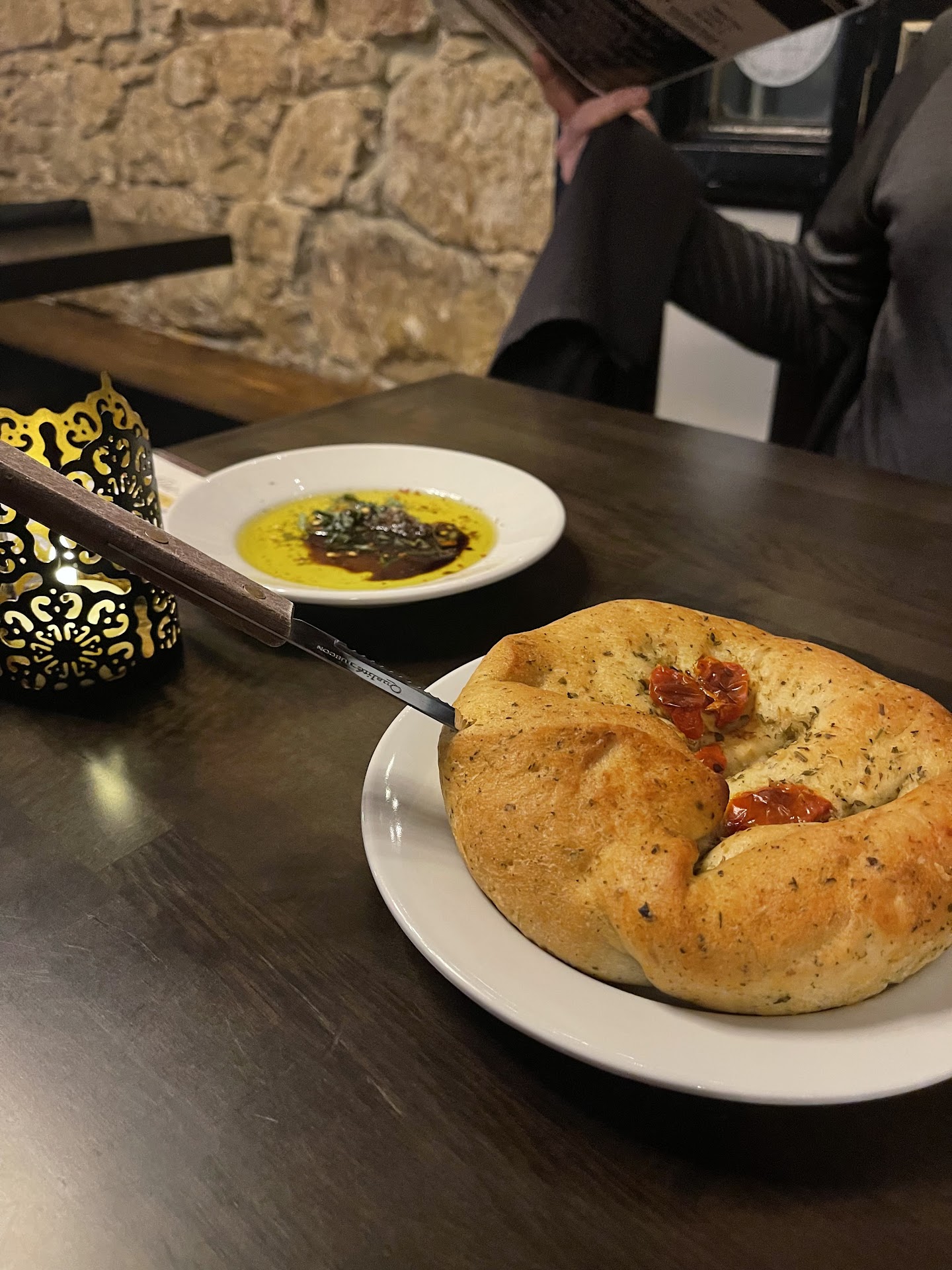 There were some redeeming factors: I did enjoy the complimentary focaccia with oil and vinegar, I'd say that was the highlight of the meal. The salad that came with the entree also was very good and included olives and pepperoncinis.