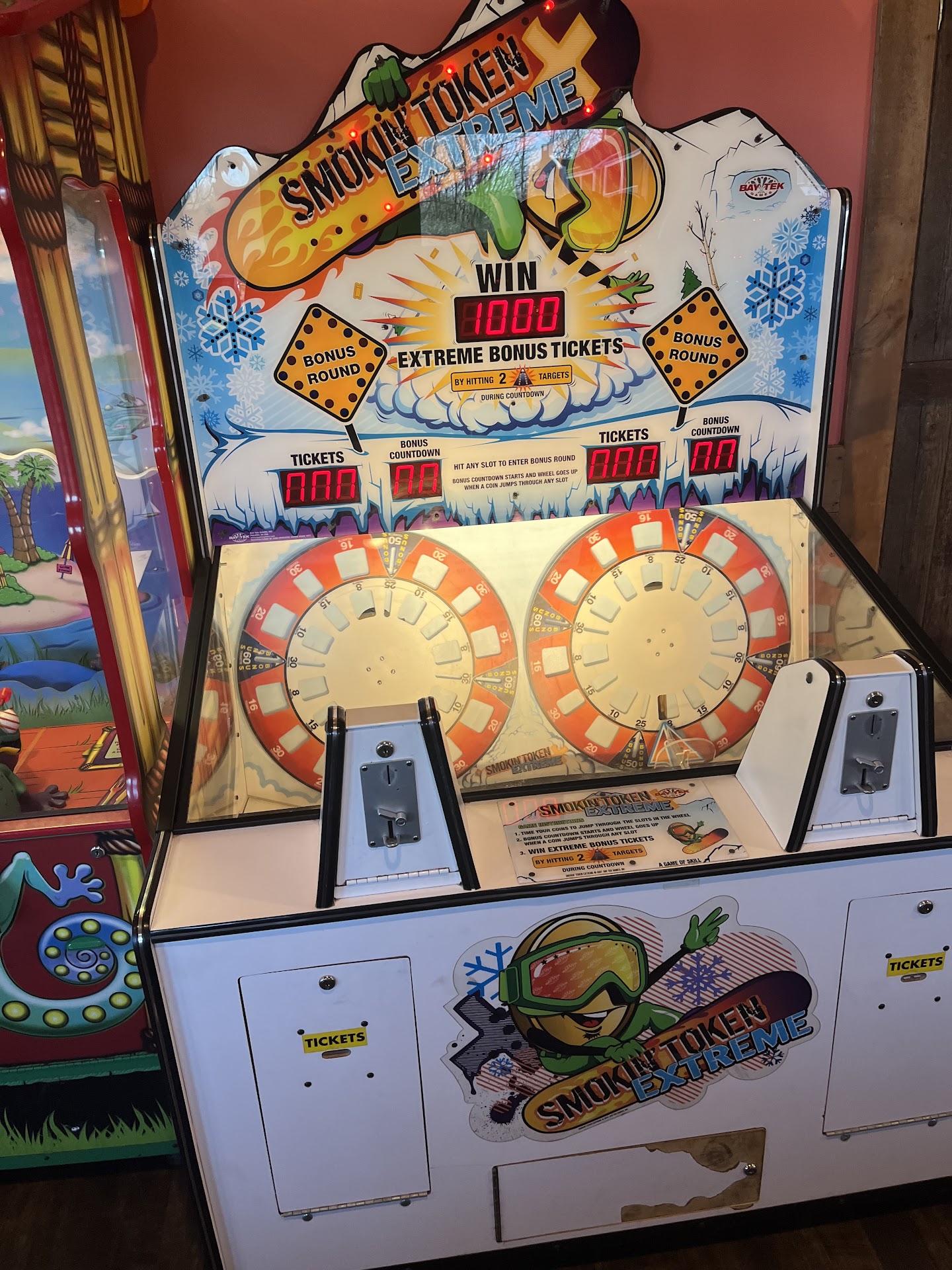 After eating we go into the "arcade" and are immediately disappointed. 70% of the games do not work and some only take quarters (after you've converted your quarters to useless tokens, this is not welcome news). After our disappointed 5 year old plays one or two of the games a few times, we take the tickets to the machine to get counted and receive a voucher. The tickets are entered and counted but it refuses to print the voucher. We spoke to a staff member who gave us credit for the tickets anyway and allowed our child to pick something in that low value range. He selects a ring pop and after leaving I open it for him to find it smashed. Cue eye roll. Clearly we should have just...