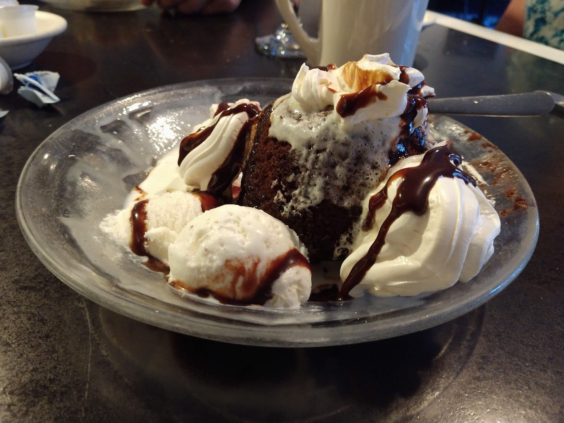 Read moreFriendly staff; meteocre food and small portions for the price. Menu is very random, anything from duck to seafood to burritos and burgers. I settled on soup and a house salad and my husband a rueben. Reuben was okay, side of potato salad was a small portion. Soup was on the chunkier side which is okay but the sausage didn't seemed cooked all the way through so I didnt eat the chunks of sausage; was supposed to have bacon in it but I didn't find any in my bowl. House salad was disappointing. It was literally just lettuce and carrots with a slice of tomato (no cheese, eggs, croutons, etc that you'd expect on a classic house salad). Since we were still hungry we ordered a dessert in hopes the place would redeem themselves. The "homemade" mudslide brownie sundae was the most disappointing. It was a mini, chocolate Bundt cake, yes cake, not a fudgy, chewy brownie that I expected. It was dry, not warm as advertised and had two quarter-sized portions of ice cream alongside it. I hate to give a poor review to a small business but I really had higher hopes for this place based on the Google rating. We really only tried this place because it was one of the few restaurants...