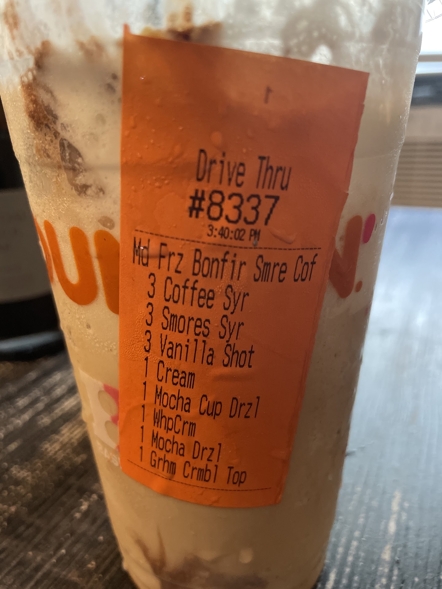 Ā Ā Ā Read moreFirst time ever trying Dunkin and it was great. What is not great is the fact that so many people are hating on this brand new establishment! I ordered a sāmores frozen coffee and itās great! but take a look at the ingredients the employees have to memorize in the photo I added! Dunkin in galesburg opened a few days ago. Just because this establishment was planed out āMonths or years agoā doesnāt mean the employees are magically going to know how to make the products. Give it a few weeks and lay some slack. As a former fast food employee, i know what these employees of Dunkin are going through right now. Everyone is...