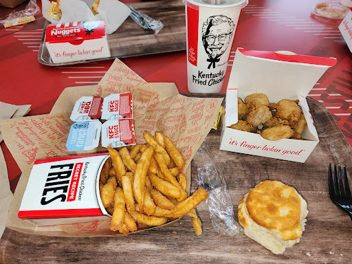 I want to say we definitely appreciate that this establishment had clean restrooms open. We used the facilities and picked up a couple of the new KFC chicken sandwiches and fries. Yummy! The fries were good and hot and perfectly seasoned. Perfection. The chicken sandwich was outstanding. The original Chick-fil-A sandwich is slightly better, but this one is a close second. This one is coated in the original recipe seasoning and is a large filet. Very good! The spicy sandwich has a little kick. 😋 Definitely worth trying! ...