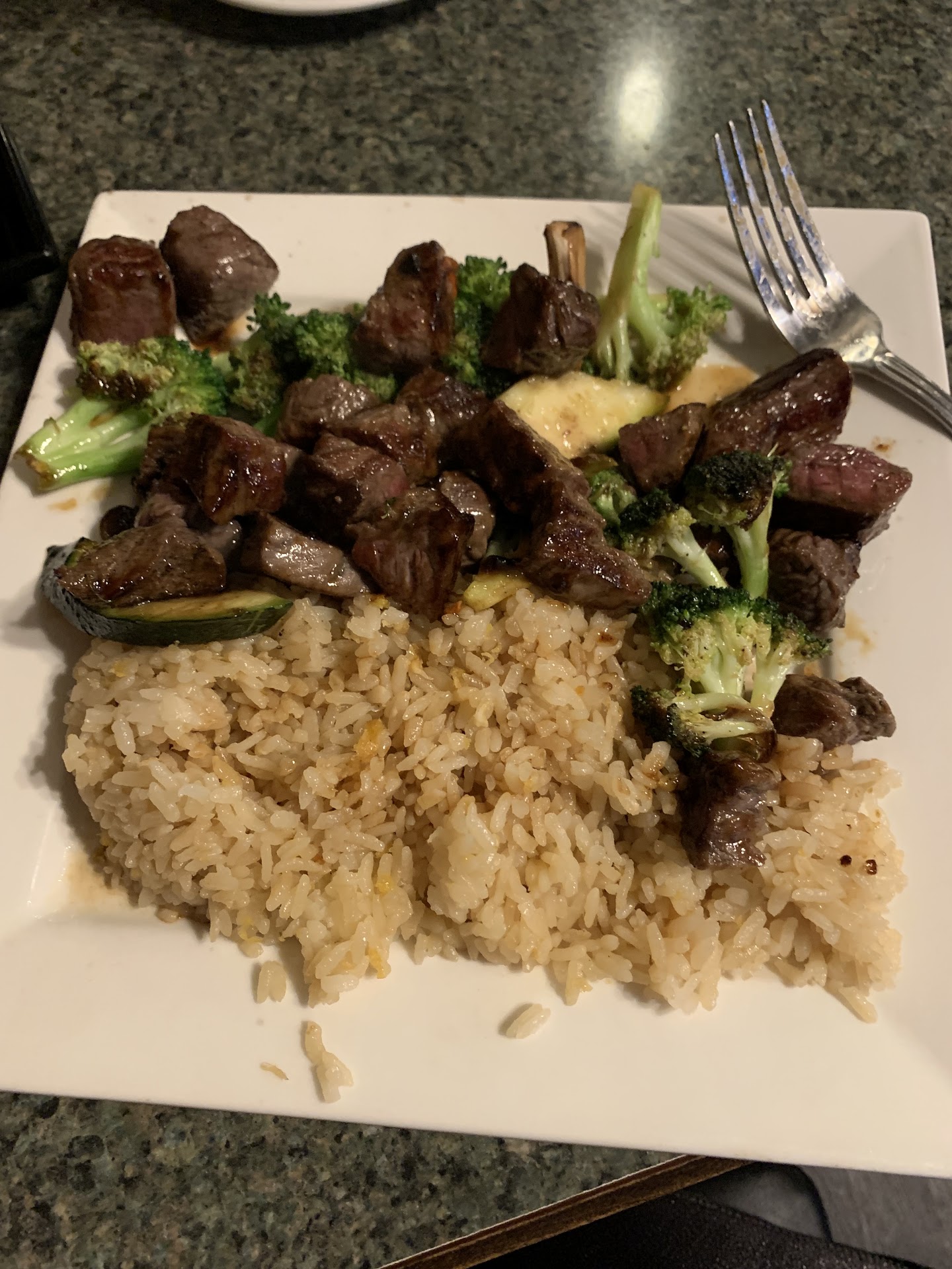 Read moreabsolutely unreal experience. i was going out on a cute date excited for a normal trip to masa (as i am a regular and local). we both try to order the chicken hibachi, “oh no chicken.” okay no chicken where most of your menu is chicken and we came at 12. we both get the steak, one medium, one well done. they were both cooked almost the exact same, rock solid. at least 30 seconds to chew for each bite and thats WITHOUT the completely raw vegetables. it was impossible to cut the huge chunks of broccoli and they didnt even give us a knife. every vegetable had a crunch and i had to basically knaw through it. after waiting almost 30 minutes for our cold, rock solid food, i ran to the bathroom. zero toilet paper on top of everything. lastly, i come back to the table to them filling our glasses HALFWAY with cherry coke after eating the whole meal without a refill. thank god i had to pay 60 dollars (not including tip) just for poor service, poor food, and 1 1/2 cherry...