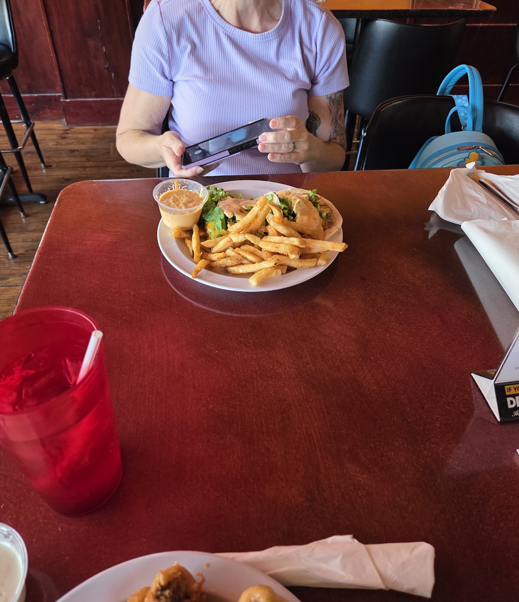 Read moreOk.. the food was good. The service was good. The only problem I had was the "upcharge" of 3 dollars or more if we shared food or if I chose a kids meal. I can't eat full meals. I have begun sharing my food. That also decreases waste. So, they were going to charge me more for trying to save, conserve, and not waste..... I don't like that. Also dont appreciate being charged for mayonnaise for my husbands burger and the Ranch for the fried mushrooms.. who does that? When do we charge for condiments that typically come with food? I mean, food was good and plentiful. But, they already charged a bit for bar and grill food, to be upcharging, too. Yes, it was good for a bar and grill. Not good for business practices imo. I liked it. But, would not be a repeat customer. That is why...
