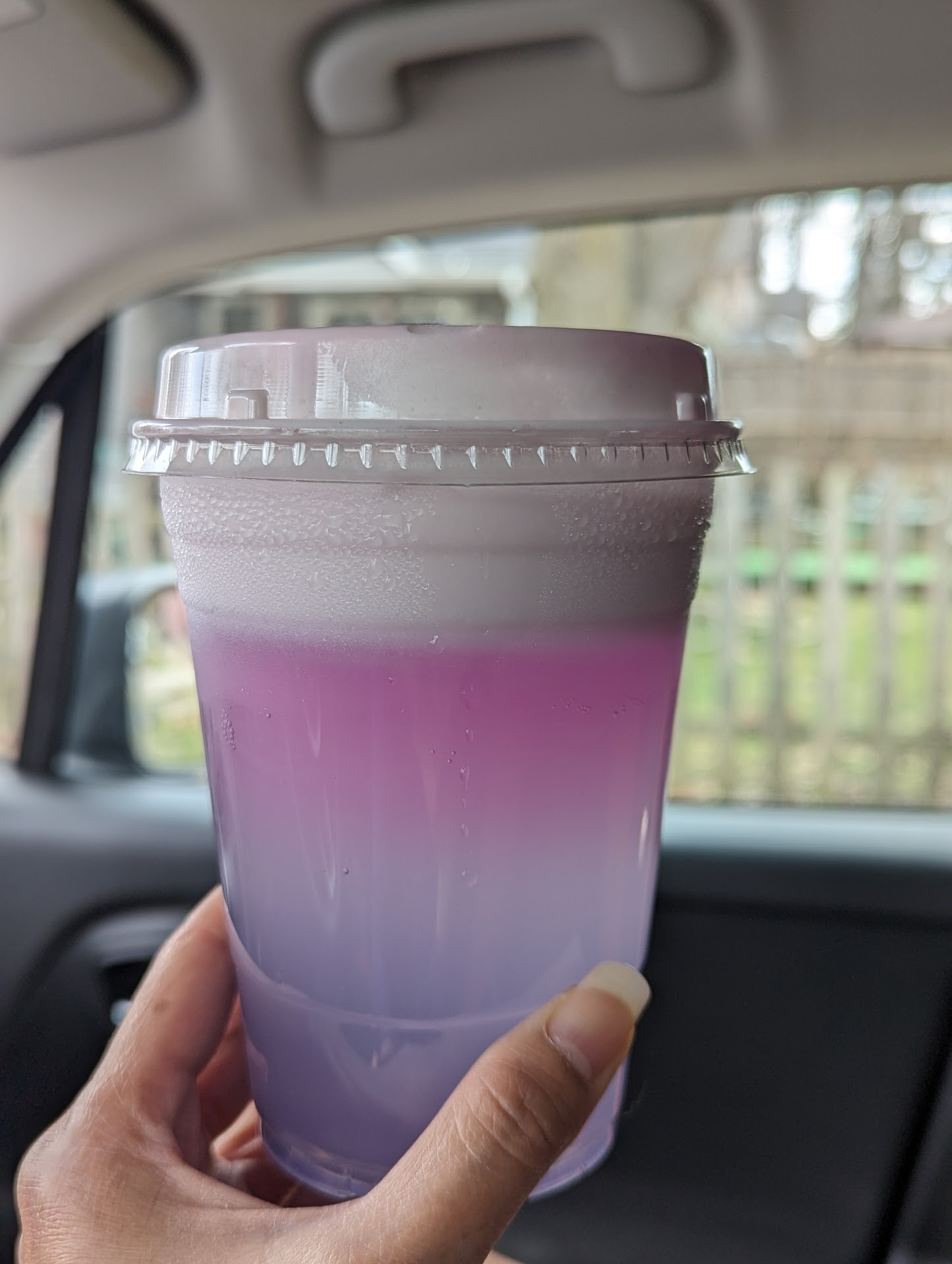 Prior customer in north lane has 2% milk for their coffee (saw her pour it). I ordered nonfat and was told that's what was in steamer pot. Frothing wand was covered in old crusty milk and she put the pot back under the wand and steamed the milk more.