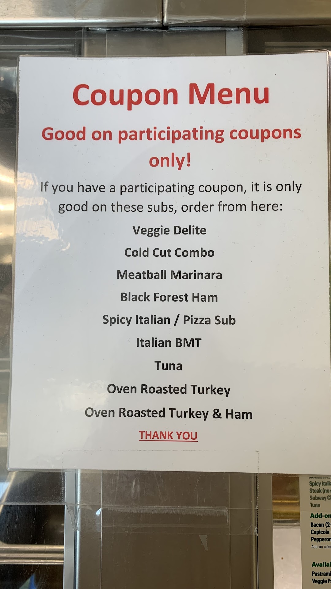 Read moreUsually my go to but they are the only subway I've ever gotten rotten Olives at The manager acted as though she had better things to do and was really snobby . Abingdon subway is where it's at they also have COUPON RESTRICTIONS HERE ! Charged me almost 10 bucks extra to add bacon to a veggie sub! Never again will I coupon here I'd much rather go to another subway that has respectable mature workers that don't gift you rude looks the whole time. Most disrespectful manager in...
